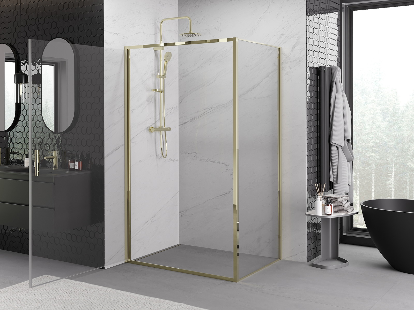 Mexen Exo atsilenkiama dušo kabina 75 x 100 cm, permatoma, auksinė - 817-075-100-50-00