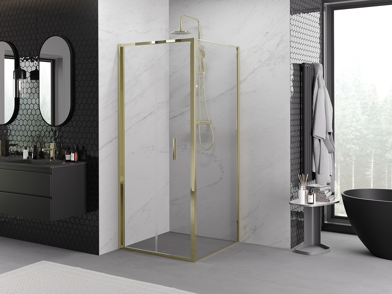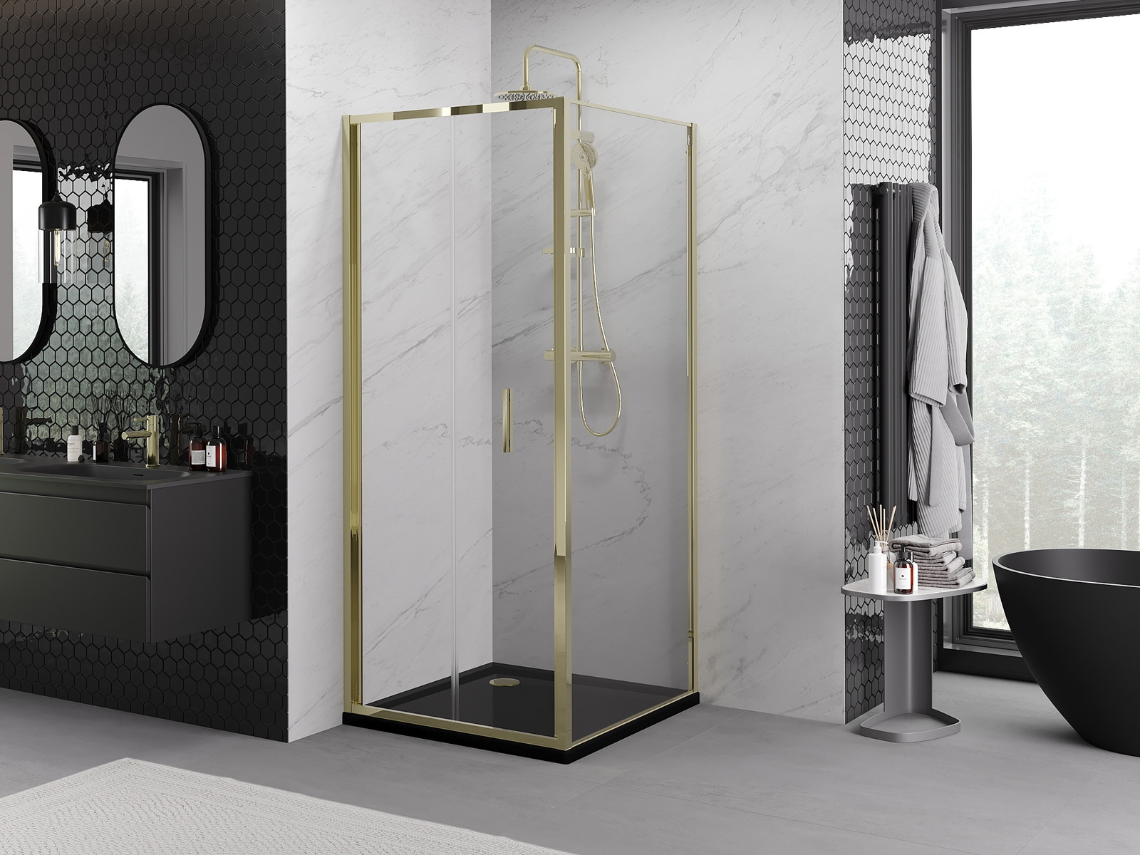 Mexen Exo sulankstoma dušo kabina 70 x 70 cm, permatoma, auksinė - 816-070-070-50-00