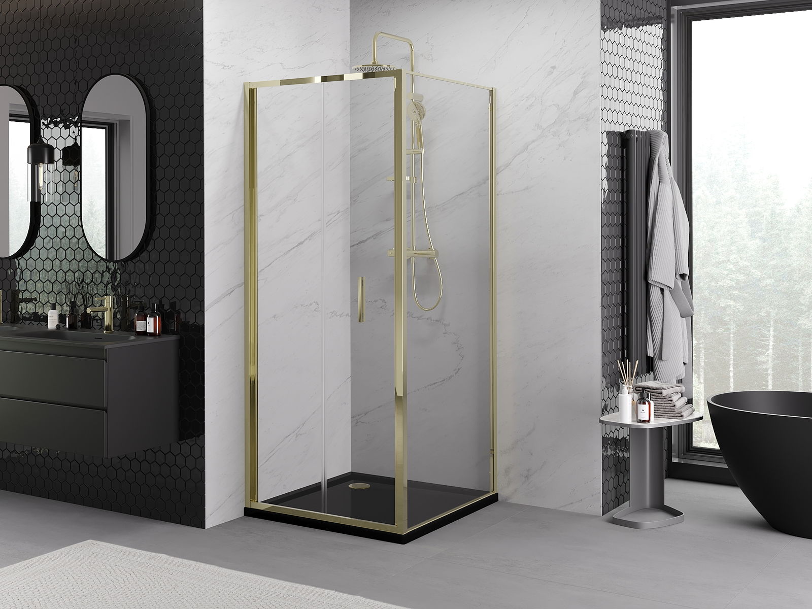 Mexen Exo sulankstoma dušo kabina 80 x 80 cm, permatoma, auksinė - 816-080-080-50-00