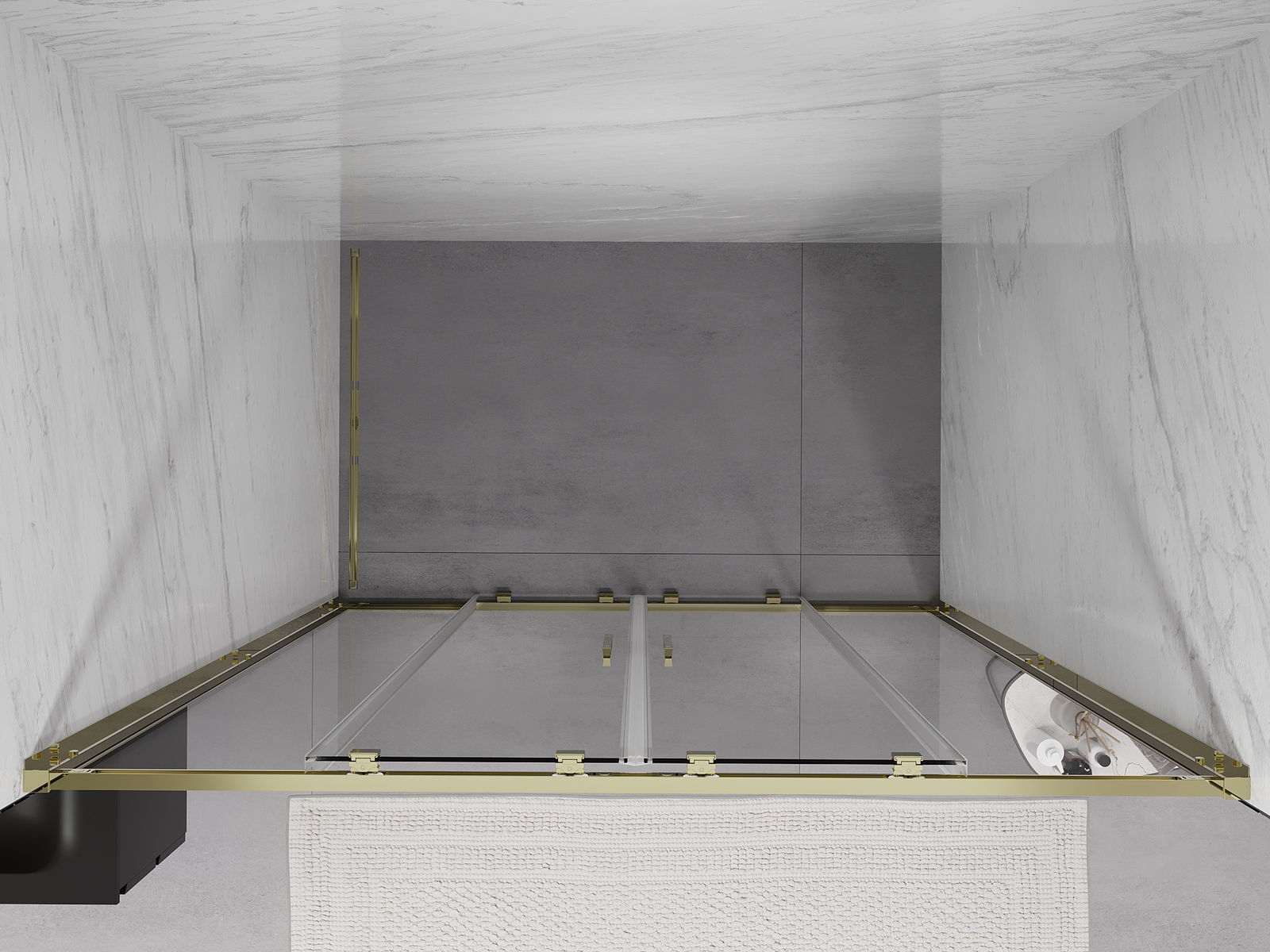 Mexen Exo dvejos slankiojančios dušo durys, 130 cm, permatomos, auksinės - 8152-130-000-50-00