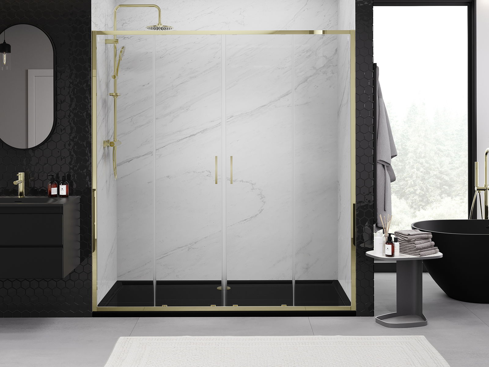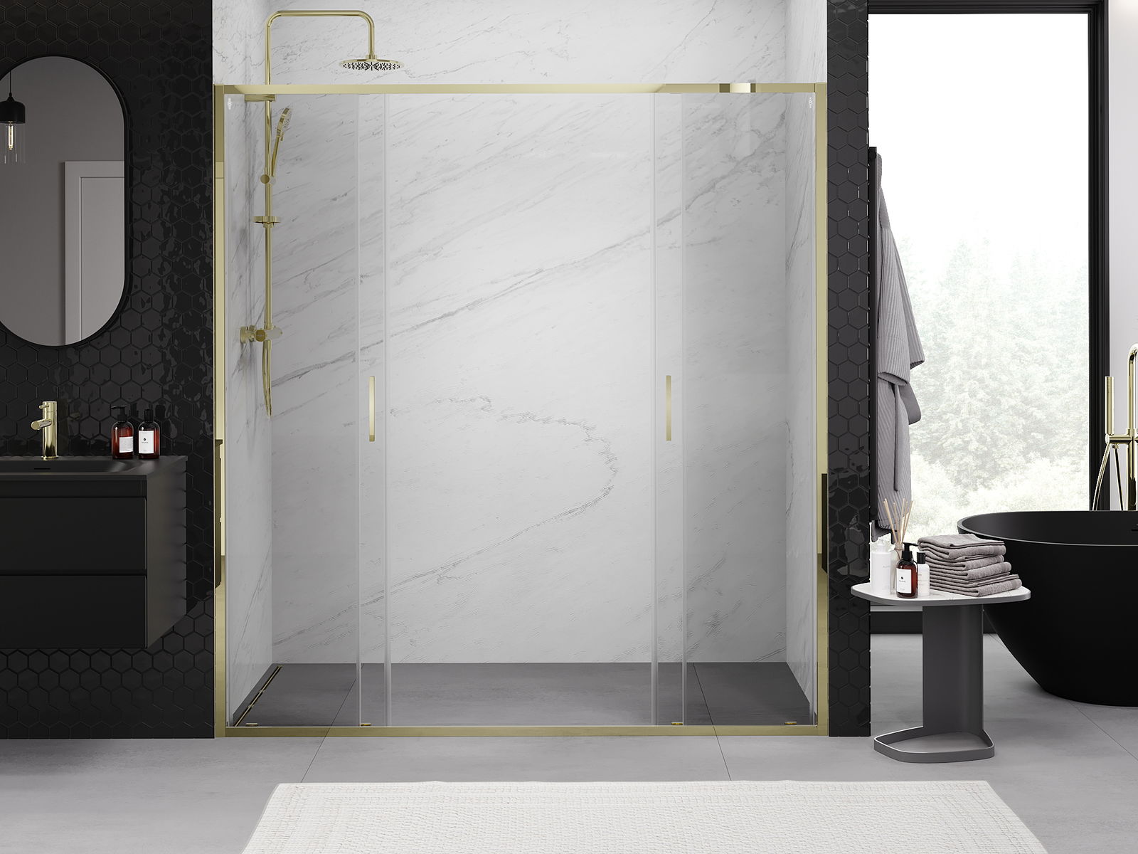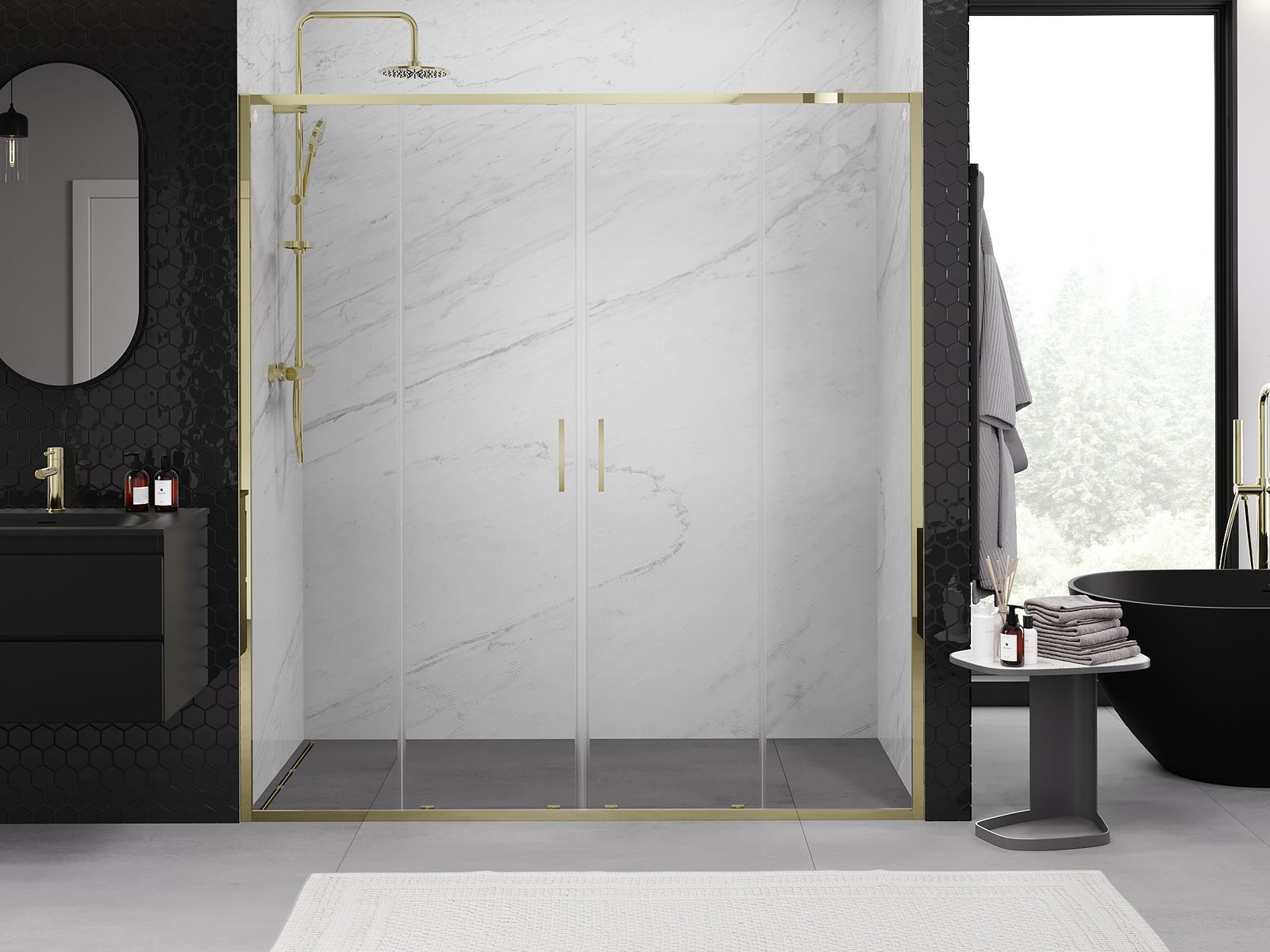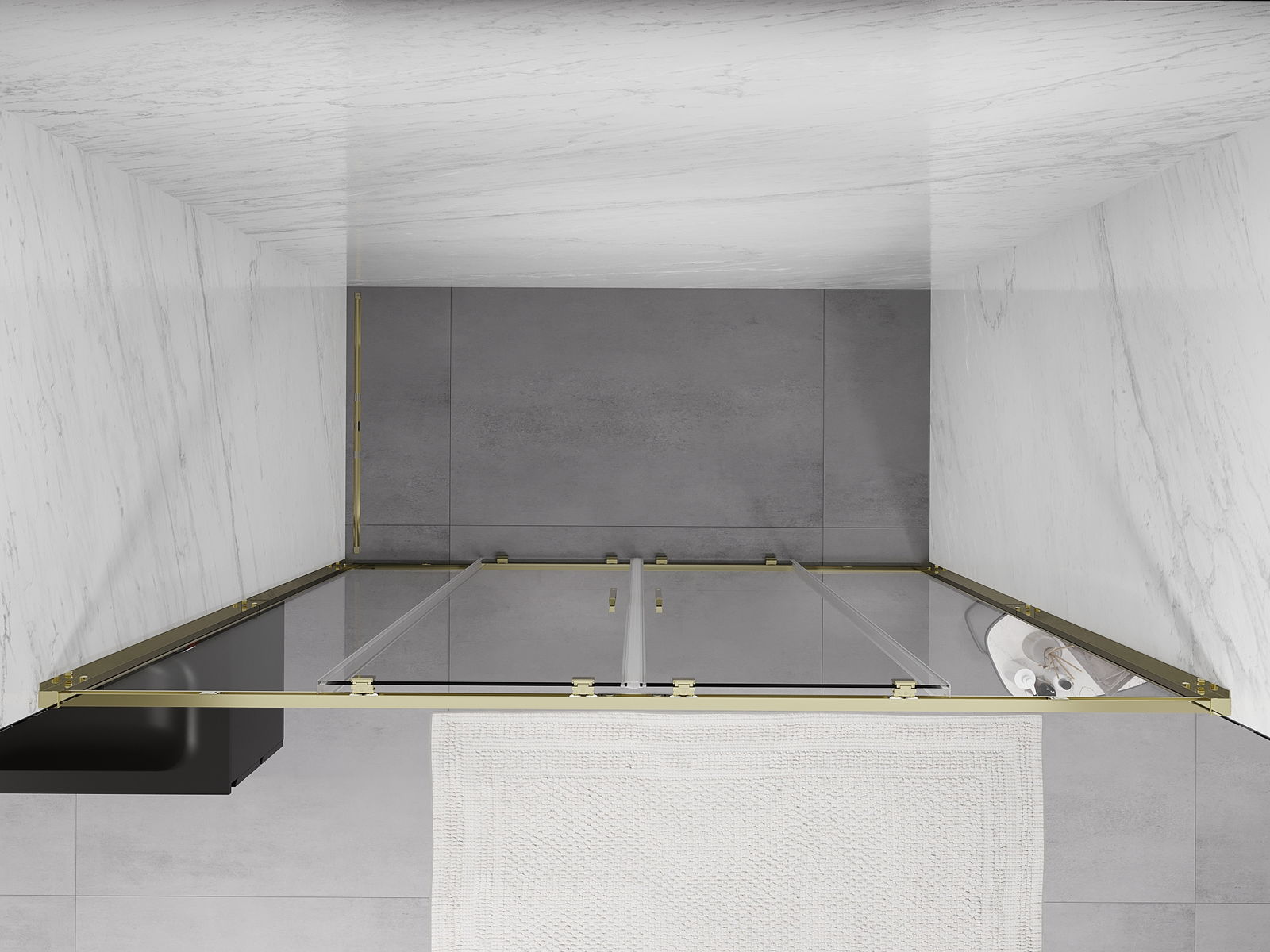 Mexen Exo dvigubos stumdomos dušo durys 200 cm, skaidrios, auksinės - 8152-200-000-50-00