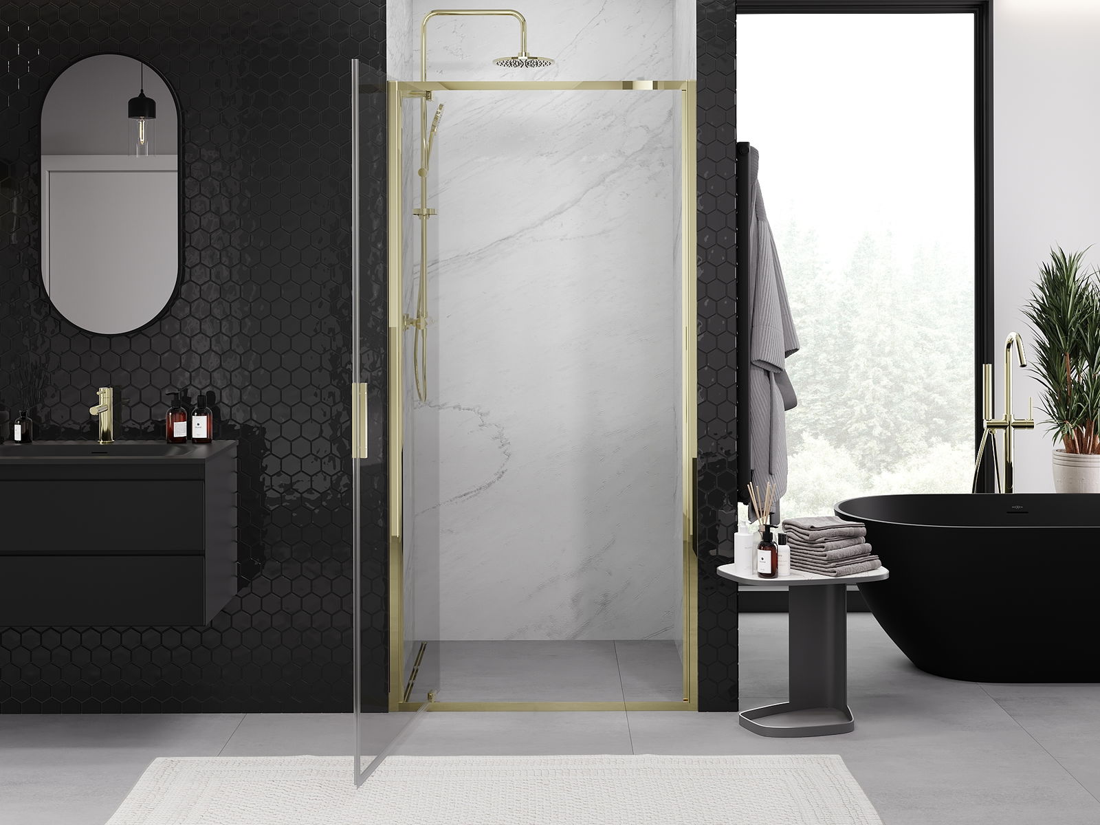 Mexen Exo dušų durys varstomos 60 cm, skaidrios, auksinės - 8181-060-000-50-00