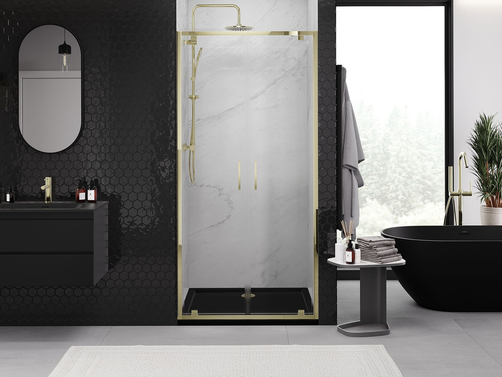 Mexen Exo dvigubos atveriamos dušo durys 100 cm, skaidrios, auksinės - 8182-100-000-50-00
