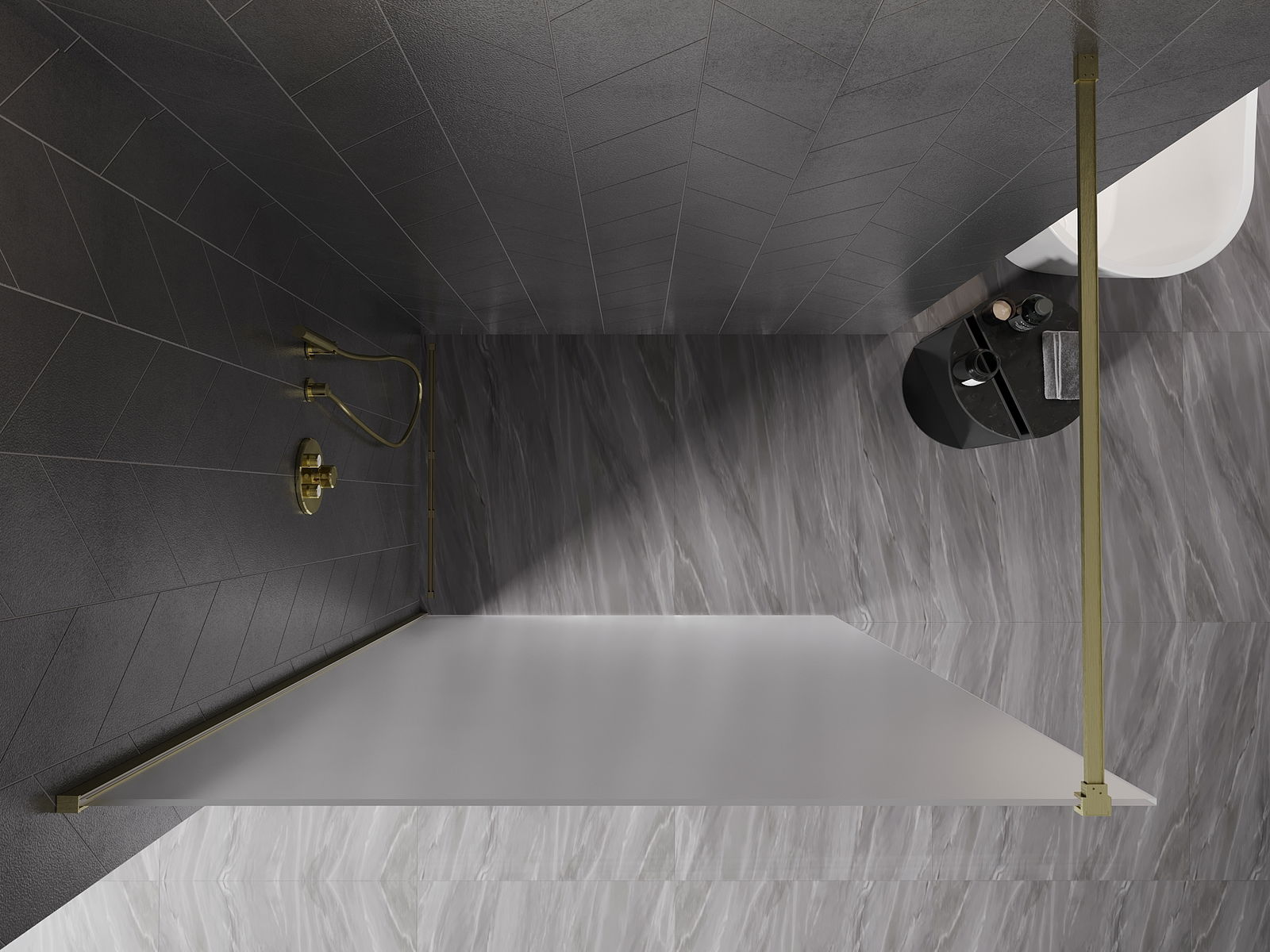 Mexen Kioto-X dušo pertvara Walk-in 160 x 200 cm, 10 mm matinis, šlifuotas auksinis - 800-160-101-55-30-X