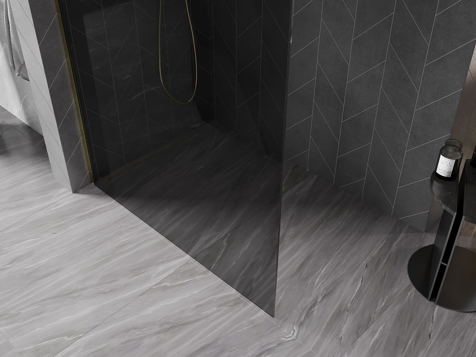 Mexen Kioto-X dušo siena Walk-in 60 x 200 cm, grafito spalvos 10 mm, auksinė - 800-060-101-50-40-X
