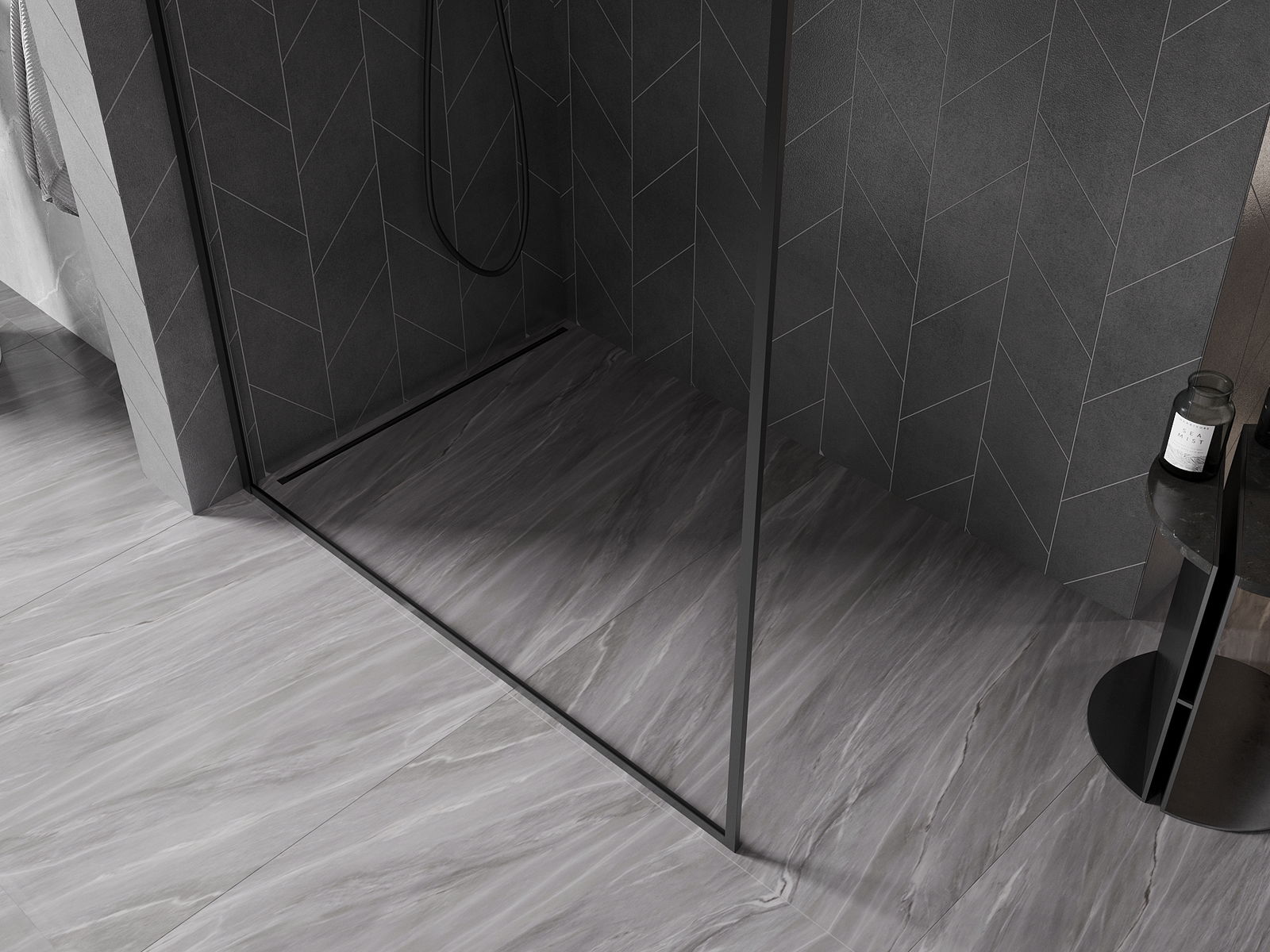 Mexen Kioto-XF dušo sienelė Walk-in su rėmu 110 x 202 cm, permatoma 10 mm, juoda - 800-110-104-70-00-X
