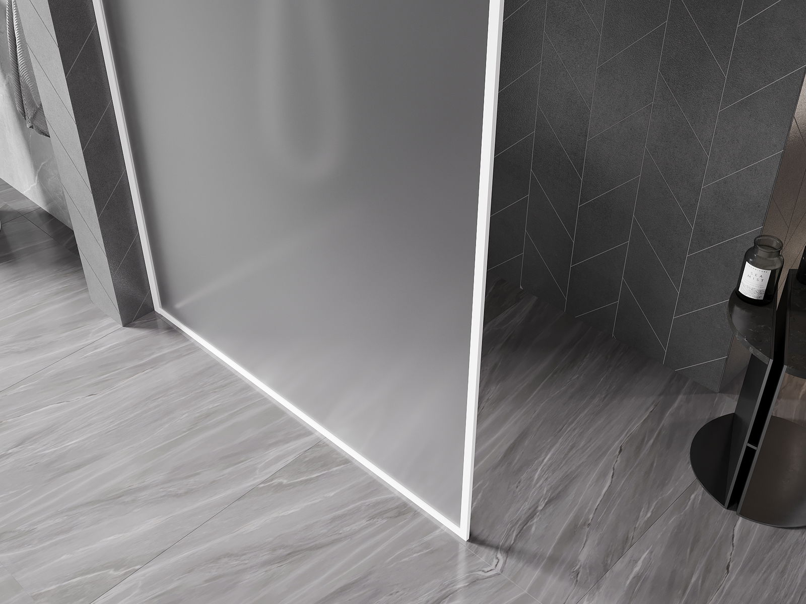 Mexen Kioto-XF dušo sienelė Walk-in su rėmeliu 80 x 202 cm, šerkšnas 10 mm, balta - 800-080-104-20-30-X