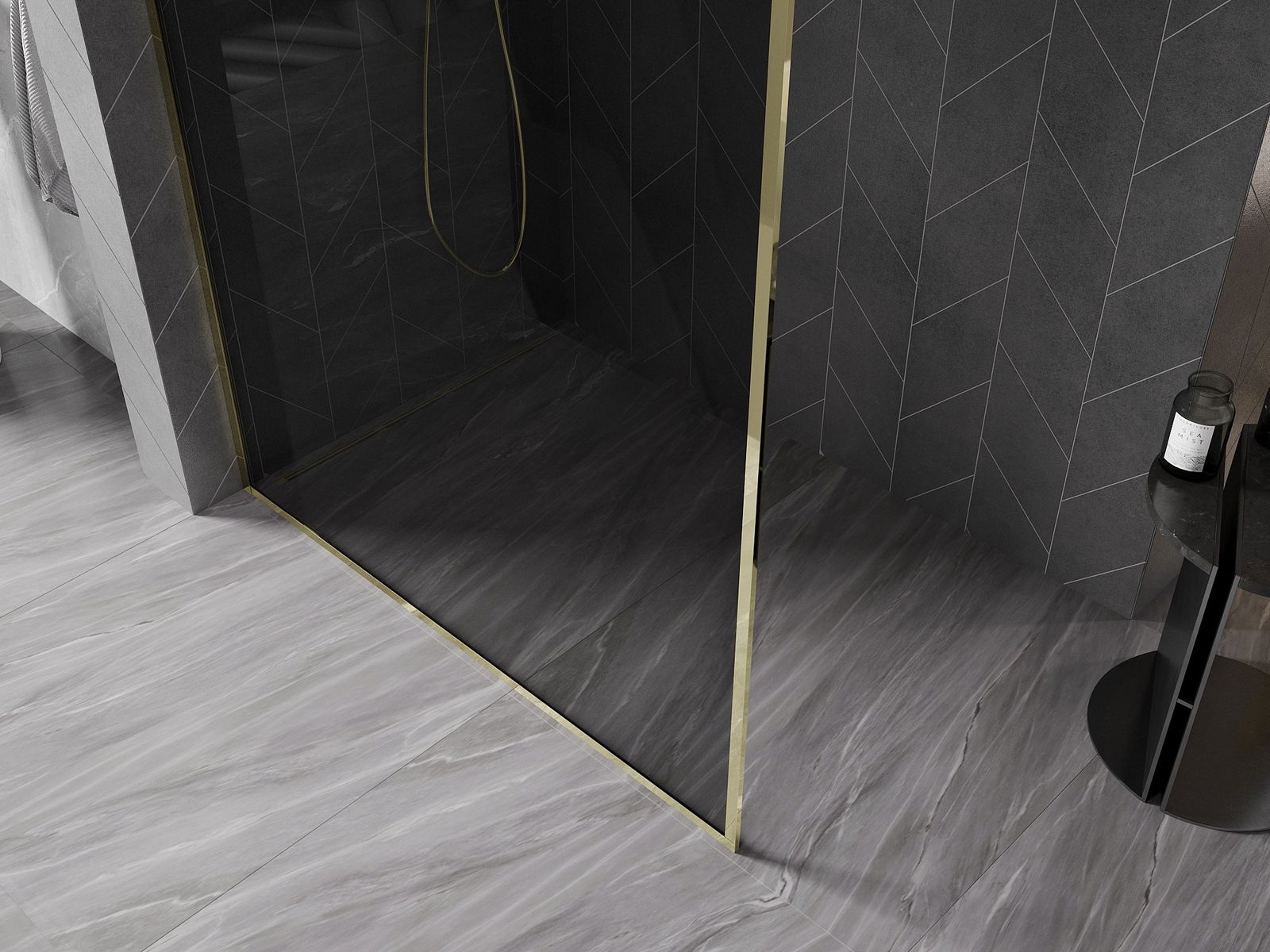 Mexen Kioto-XF dušo sienelė Walk-in su rėmeliu 110 x 202 cm, grafitas 10 mm, auksinė - 800-110-104-50-40-X
