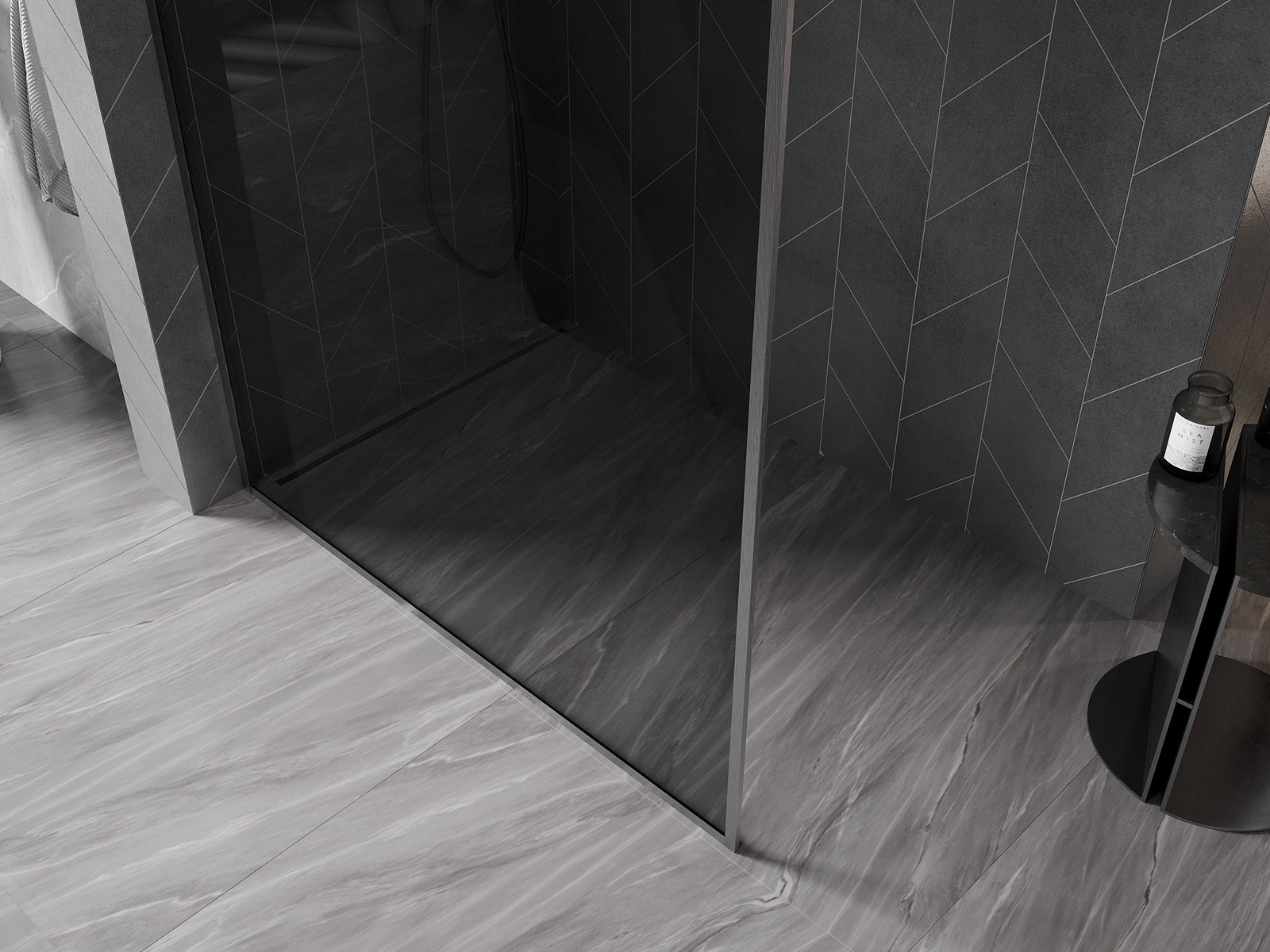 Mexen Kioto-XF Dušo sienelė Walk-in su rėmeliu 70 x 202 cm, grafitas 10 mm, šlifuota pilkoji spalva - 800-070-104-66-40-X