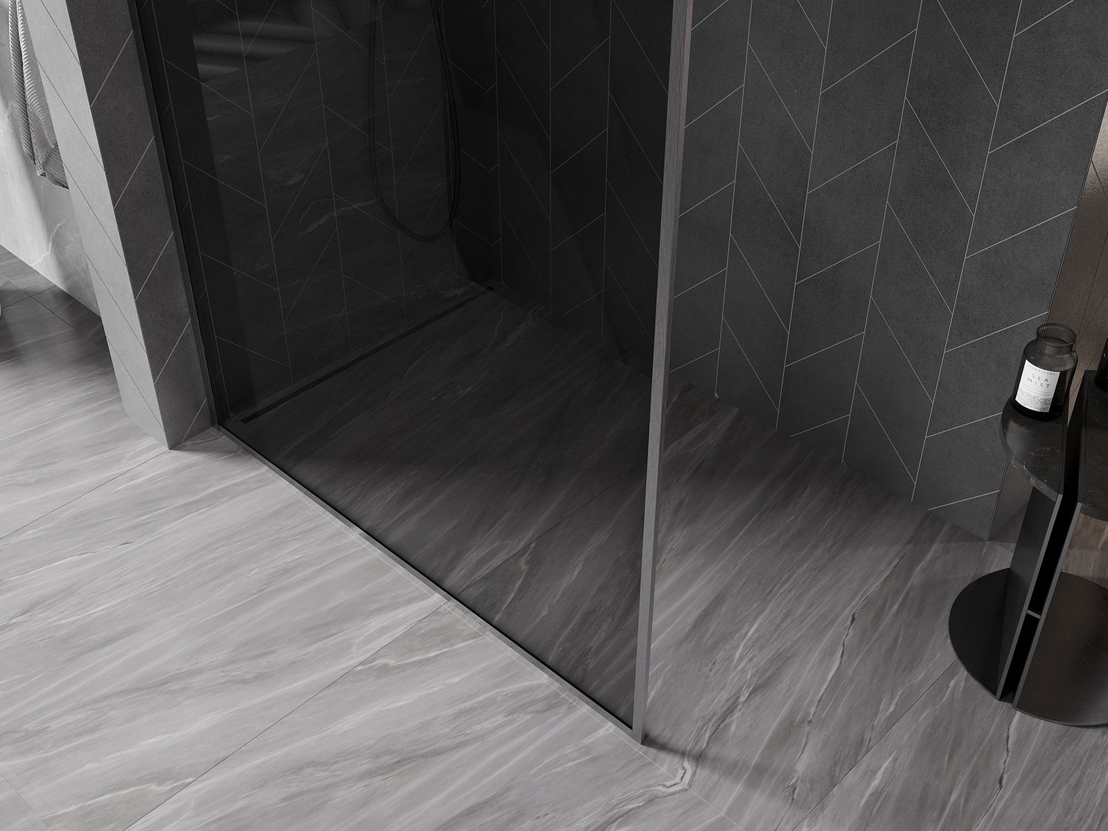Mexen Kioto-XF dušo sienelė Walk-in su rėmu 120 x 202 cm, grafitas 10 mm, šlifuota ginklų pilka - 800-120-104-66-40-X