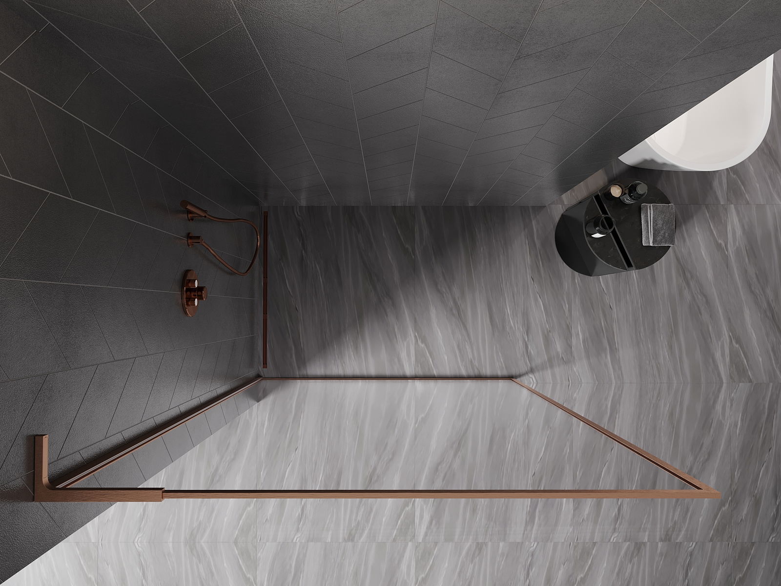 Mexen Kioto-F L dušo sienelė Walk-in su rėmeliu 75 x 202 cm, skaidri 8 mm, šepečiu valyta varis - 800-075-174-65-00