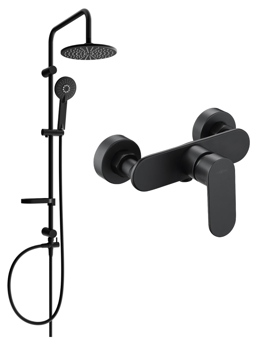 Mexen Carl išorinis dušo komplektas su lietaus dušu ir dušo maišytuvu Milo, juodas - 71340240-70
