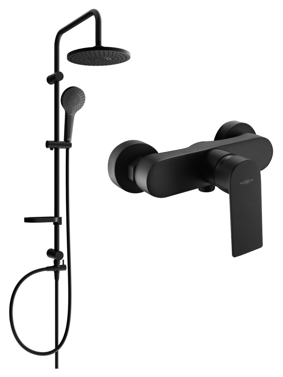 Mexen Erik viršutinio montavimo dušo komplektas su lietaus dušu ir dušo maišytuvu Royo, juodas - 72240205-70