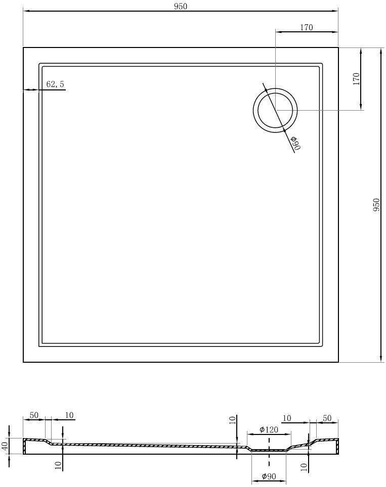 Mexen Flow dušo padėklas kvadratinis slim 95 x 95 cm, blizgus baltas - 46S109595