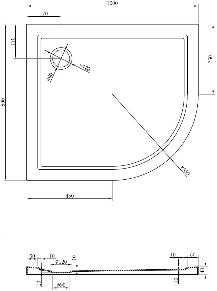 Mexen Flow pusiau apvalus asimetriškas plonas kairysis dušo padėklas 100 x 80 cm, baltas blizgus - 46Q108010L