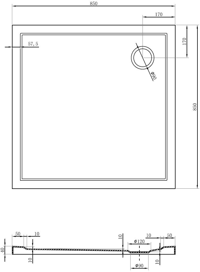 Mexen Flow kvadratinė plona dušo padėklas 85 x 85 cm, juodas matinis - 46S708585