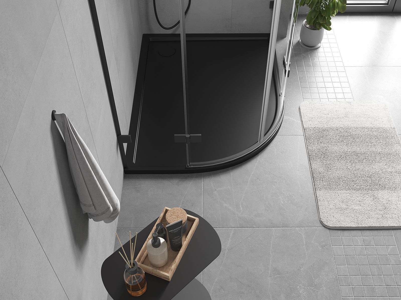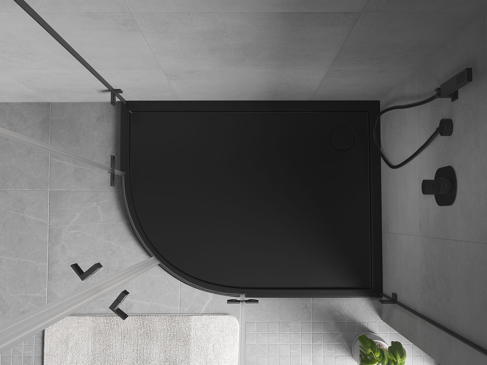 Mexen Flow pusapvalis asimetrinis plonas dešinys padėklas 90 x 80 cm, juodas matinis - 46Q708090R