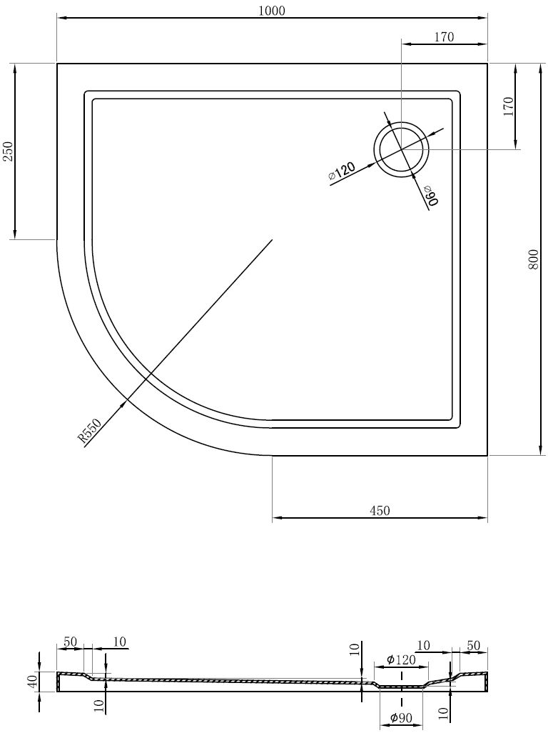 Mexen Flow pusapvalė asimetrinė plona dešinė dušo padėklas 100 x 80 cm, juodas matinis - 46Q708010R