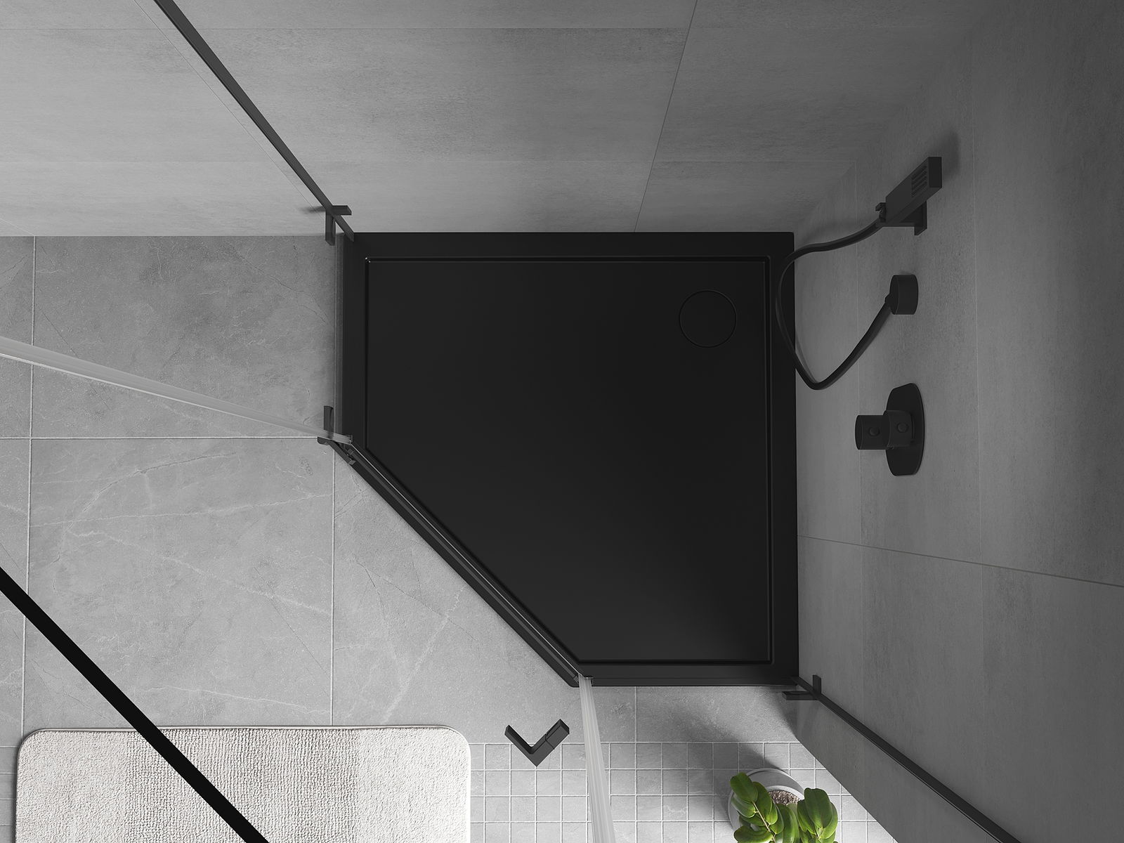 Mexen Flow pentagoninis plonas dušo padėklas 100 x 100 cm, juodas matinis - 46P701010