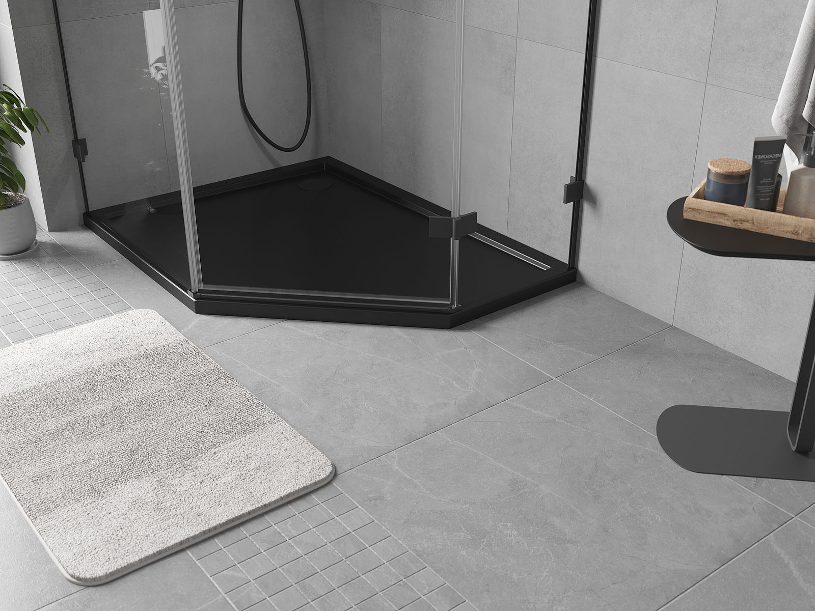 Mexen Flow penkiakampė dušo padėklas plonas kairė 90 x 80 cm, juoda matinė - 46P708090L
