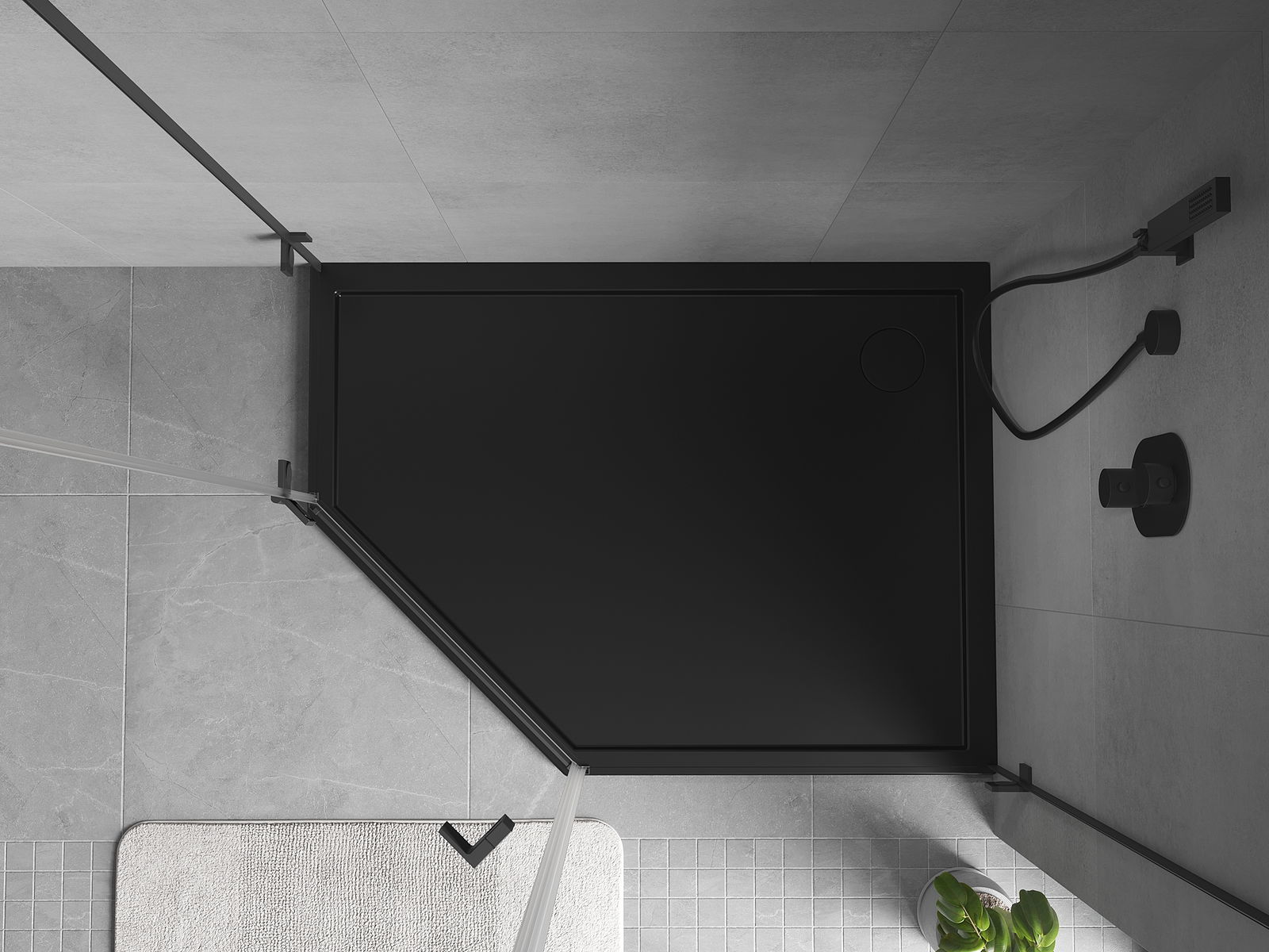 Mexen Flow penkiakampė dušo padėklas slim dešinysis 100 x 90 cm, juodas matinis - 46P709010R
