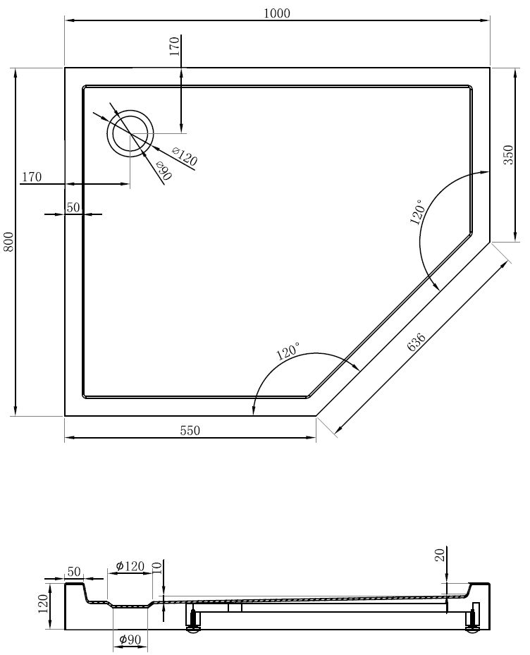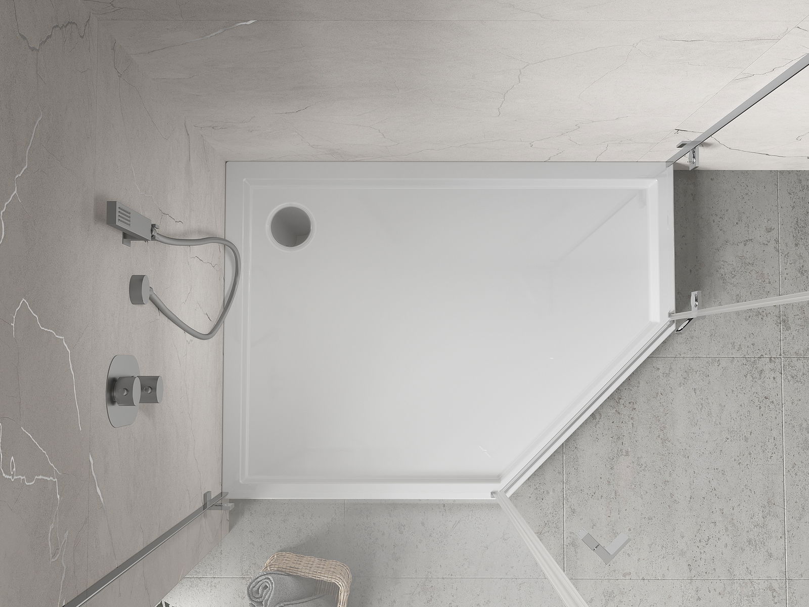 Mexen Flow+ pentagoninė dušo padėklas kairėje 100 x 80 cm, baltas blizgus - 46P108010LH