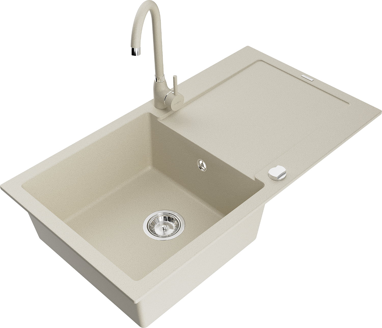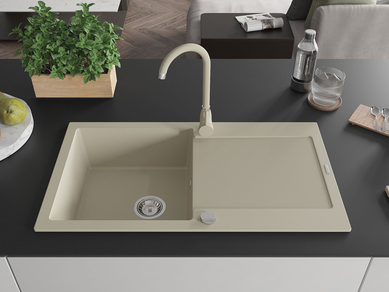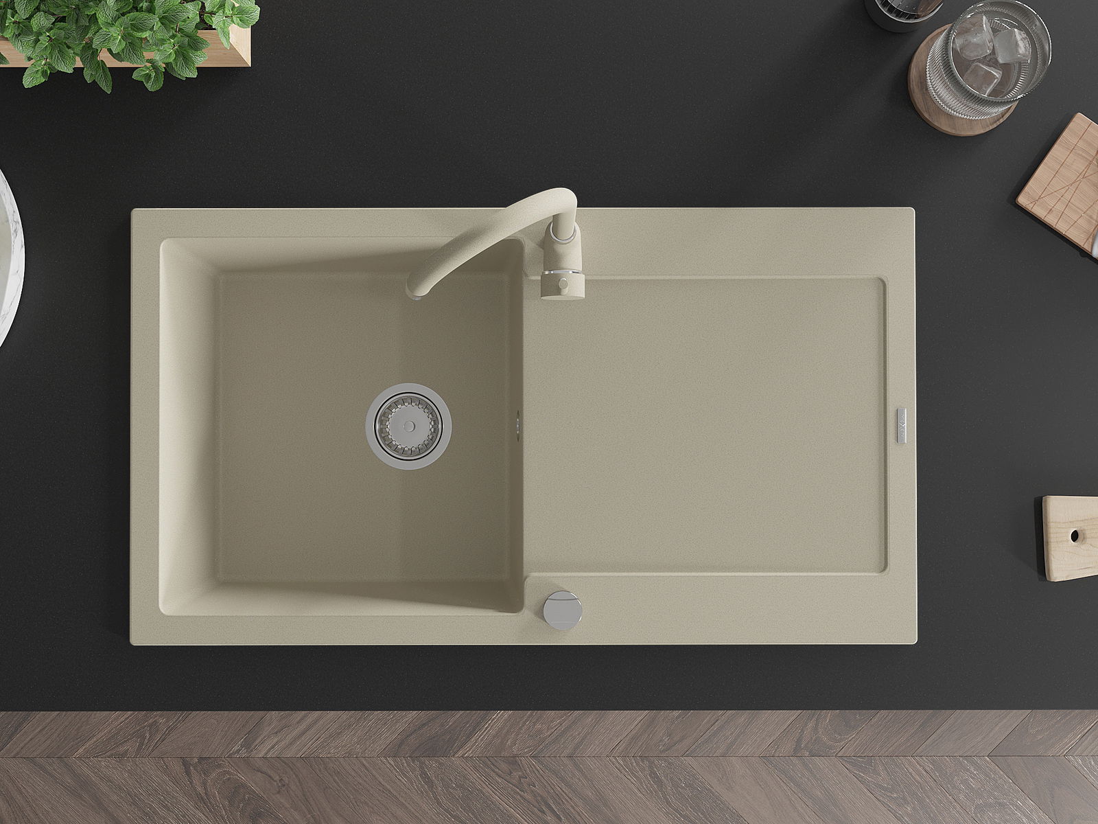 Mexen Leo granitinis plautuvės su vienu skyriumi su nutekėjimu ir virtuviniu čiaupu Telma, smėlio spalvos - 6501-69-670200-69