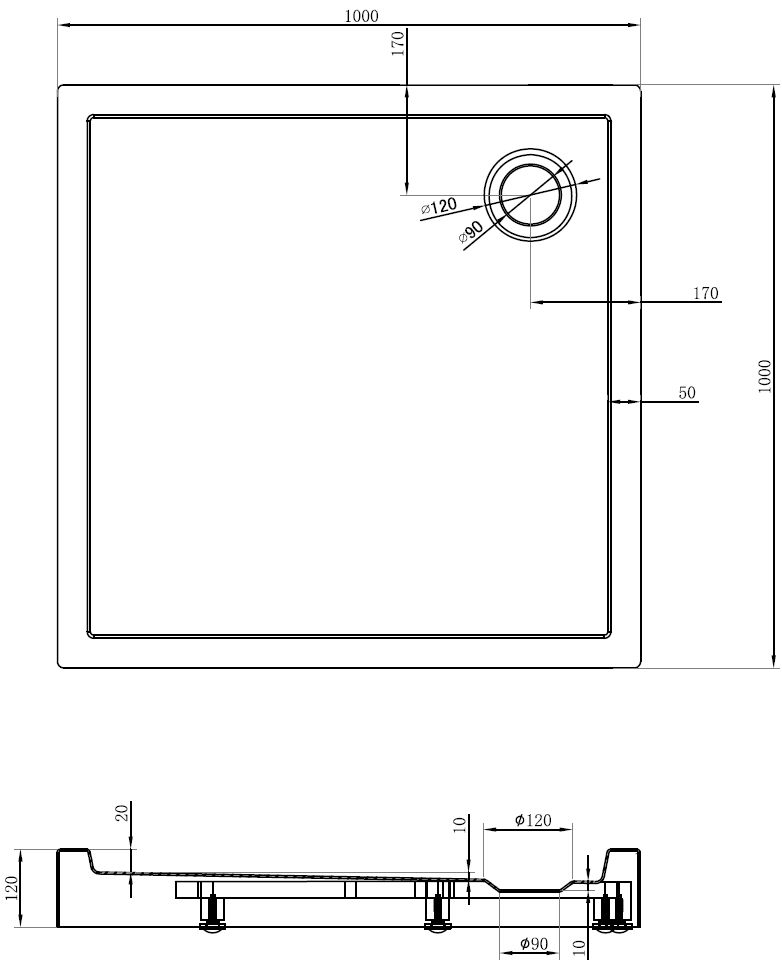 Dušo padėklo dugnas papildomai sutvirtintas stiklo pluoštu ir HDF plokšte, todėl yra ne tik patvarus, bet ir užtikrina saugumą maudantis. Sustiprintas dugnas užtikrina ilgalaikį dušo padėklo naudojimą.