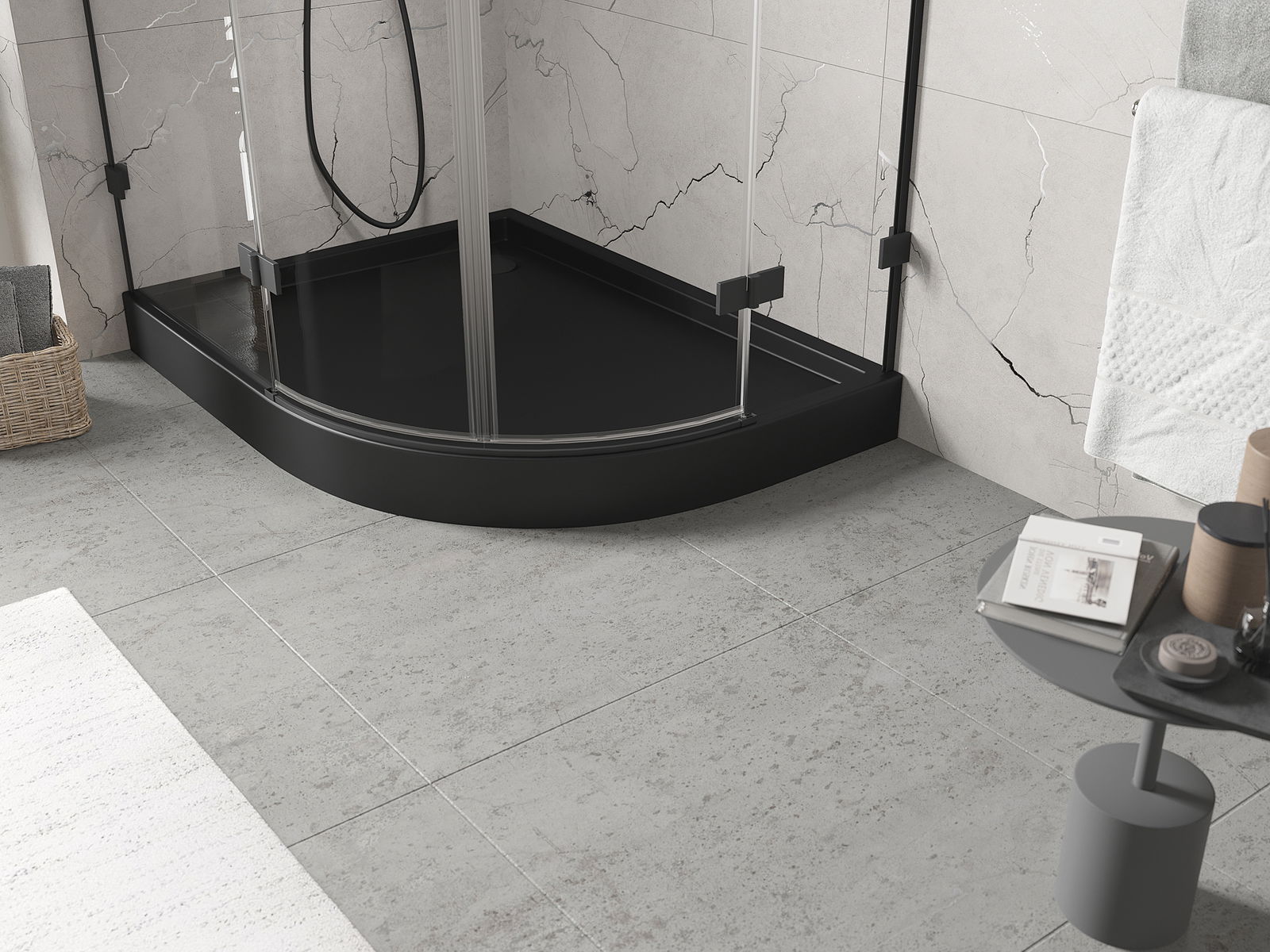Mexen Flow+ pusapvalė asimetrinė kairysis dušo padėklas 100 x 80 cm, juoda matinė - 46Q708010LH