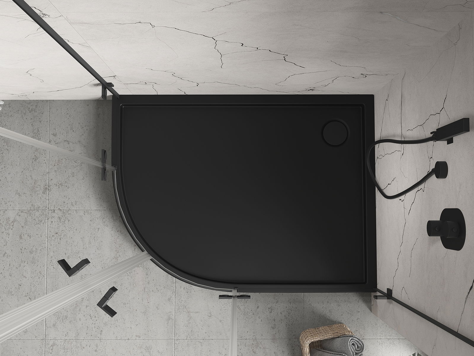 Mexen Flow+ asimetrinis pusapvalis dušo padėklas, dešinysis, 100 x 90 cm, juodas matinis - 46Q709010RH