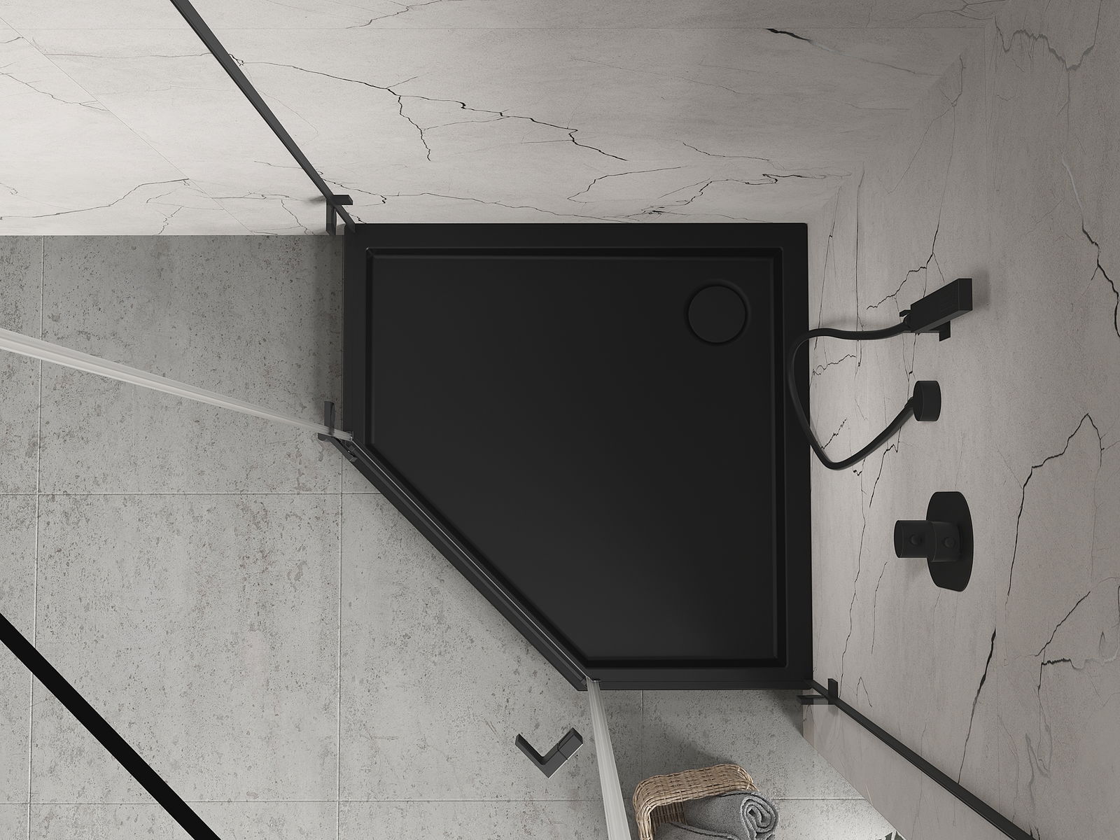 Mexen Flow+ penkiakampė dušo padėklas 100 x 100 cm, juodas matinis - 46P701010H