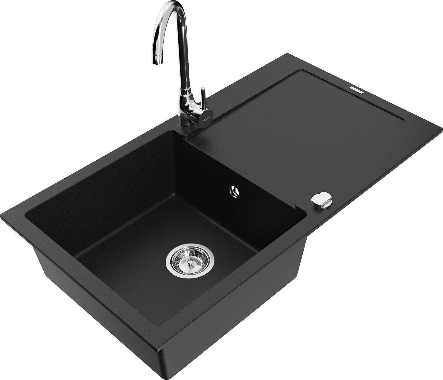 Mexen Leo granitinė vienos kameros plautuvė su nusausintuvu ir virtuviniu maišytuvu Telma, juoda - 6501-77-670200-00