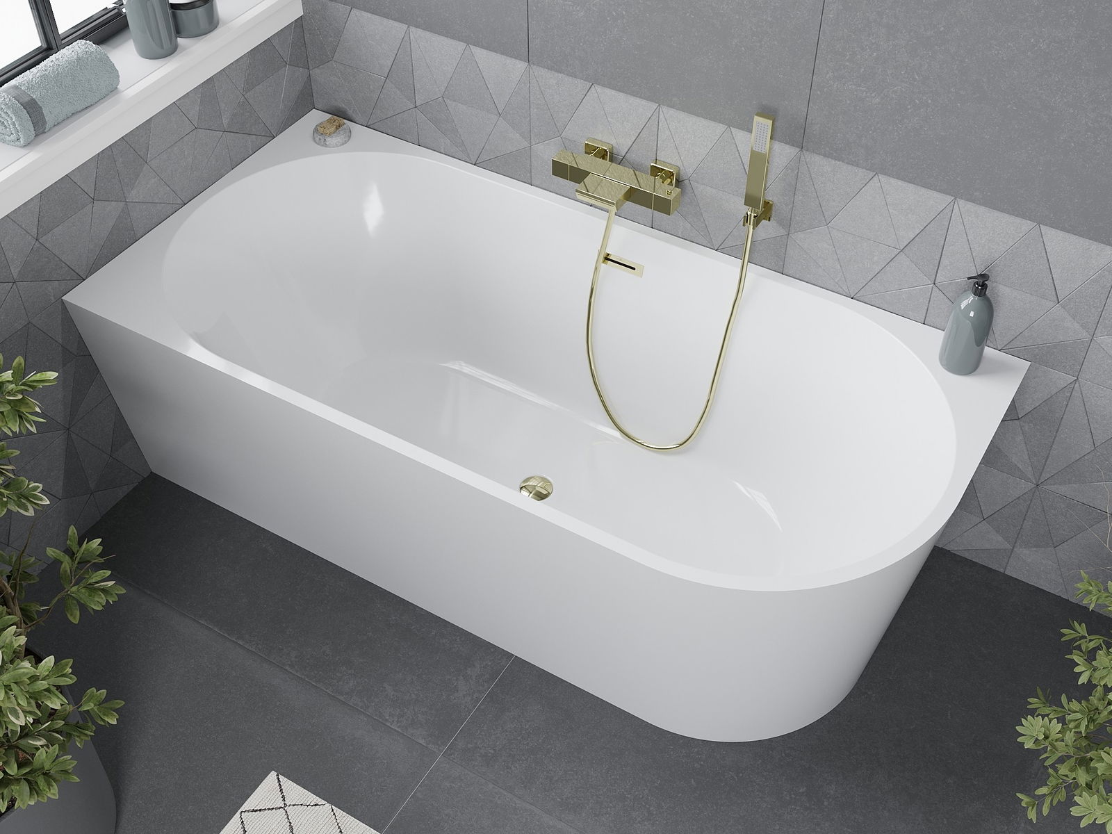 Mexen Mia laisvai stovinti kampinė vonia kairė 160 x 80 cm, balta, auksinis persipylimas - 52691608000L-50