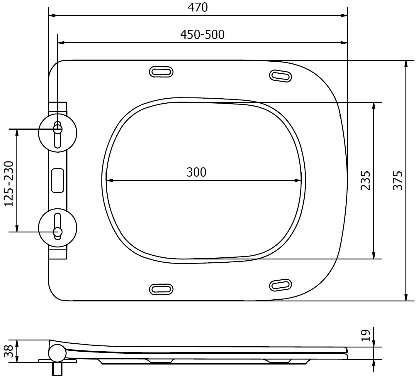 Komplekte yra tvirti metaliniai vyriai, kurie užtikrina stabilų dangčio pritvirtinimą prie WC lėkštės. Tai praktiškas sprendimas, leidžiantis lengvai pritaikyti dangtį prie tualeto formos ir matmenų, užtikrinant naudojimo patogumą.