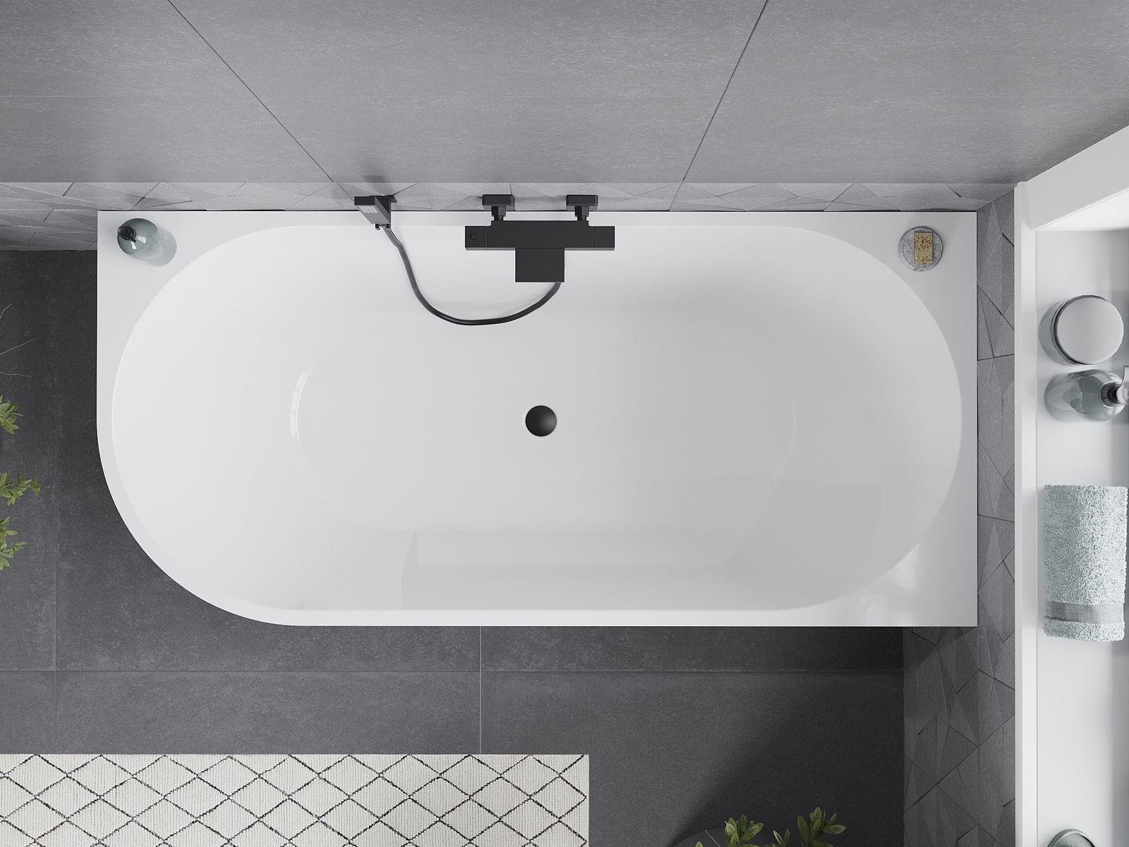 Mexen Mia Laisvai stovinti kampinė vonia dešinė 160 x 80 cm, balta, juodas persipylimas - 52691608000P-70