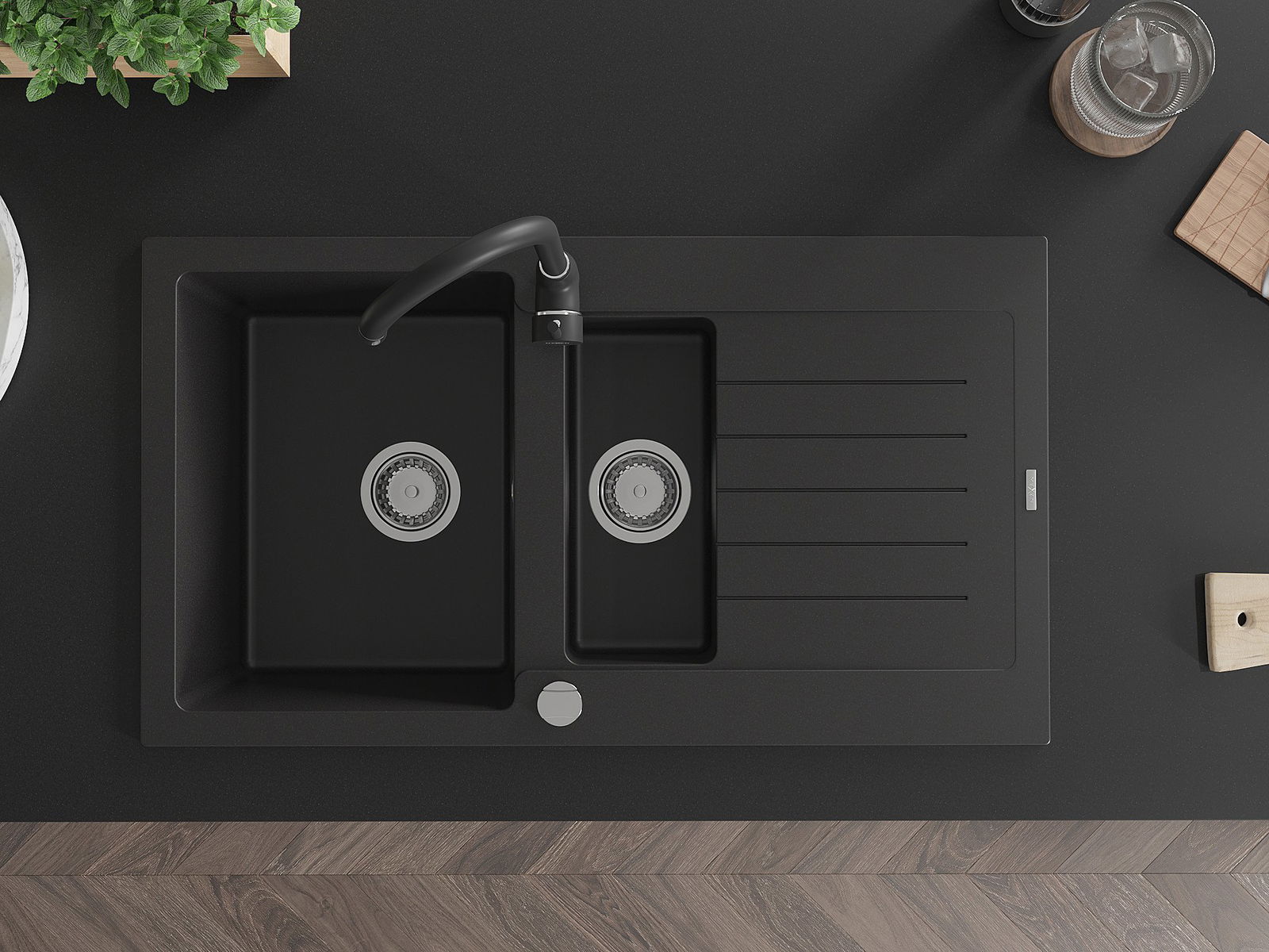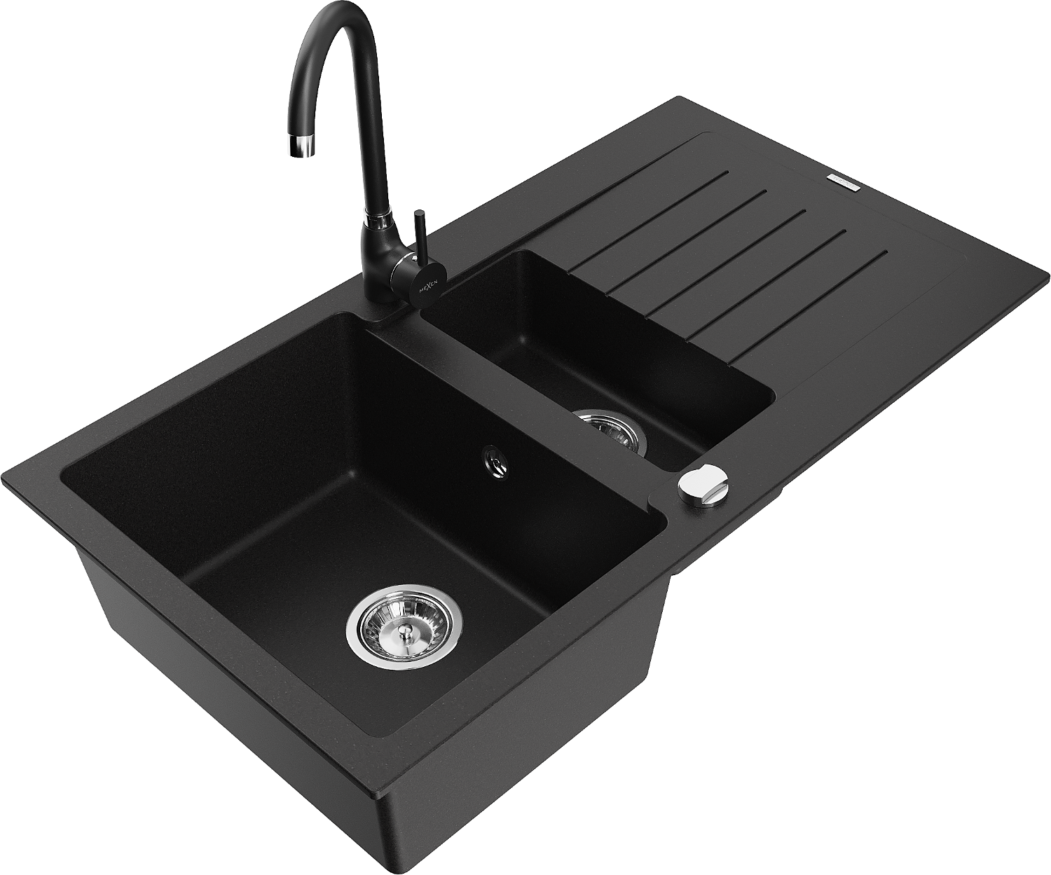Mexen Matias granito plautuvė, 1,5 skyriaus su nutekėjimu ir Telma virtuviniu maišytuvu, juoda - 6502-77-670200-70