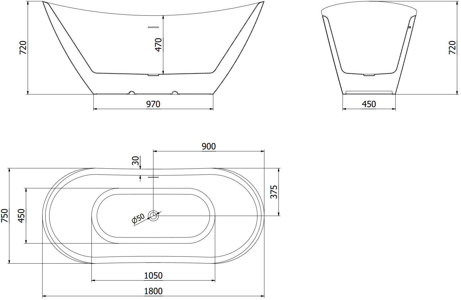Komplekte yra sifonas su klik-klak kamščiu, leidžiančiu greitai atidaryti ir uždaryti vonios nutekėjimo vožtuvą. Pamirškite kamščio ieškojimą prieš maudynes! Pakanka vieno spustelėjimo, kad sustabdytumėte arba nuleistumėte vandenį.