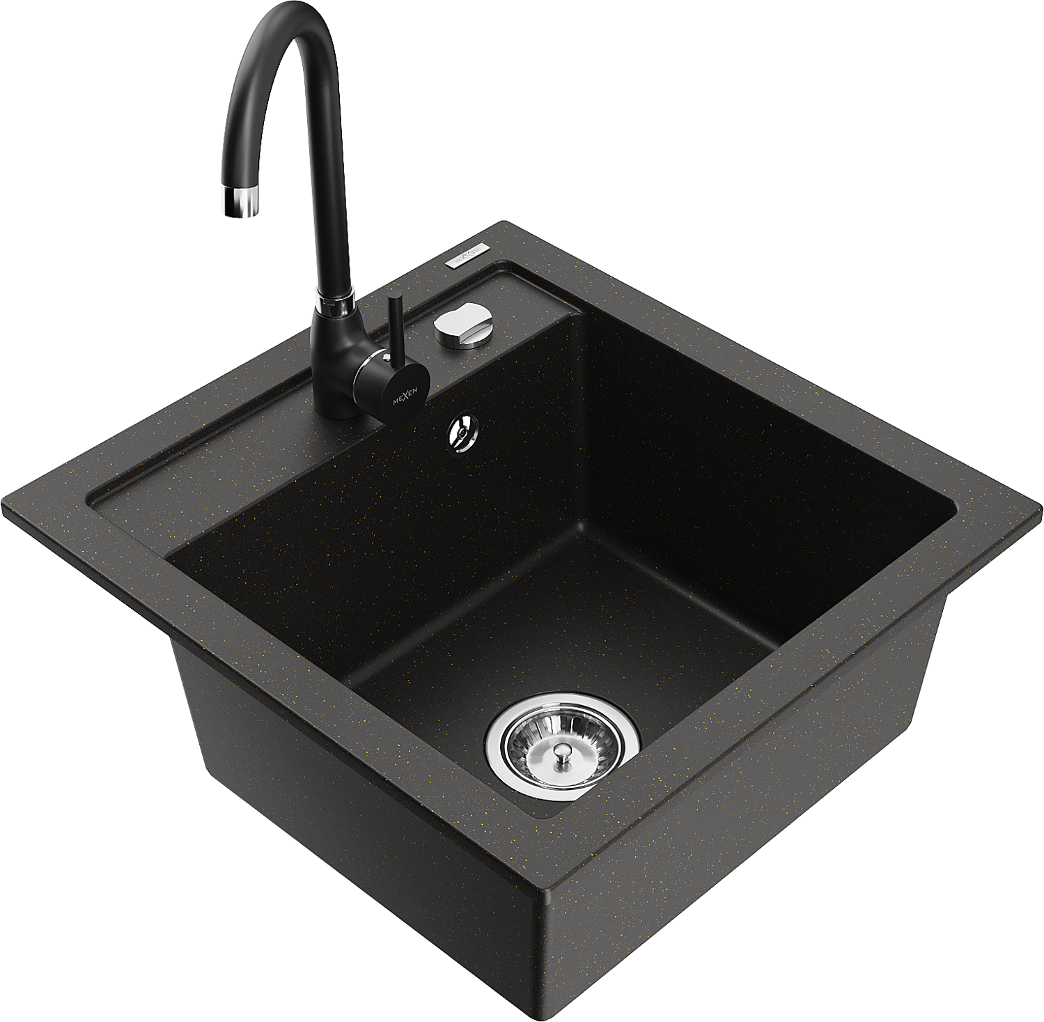 Mexen Vito granitinis virtuvės kriauklė su 1 skyriumi ir virtuviniu maišytuvu Telma, juodas/auksinis metalikas - 6503-75-670200?