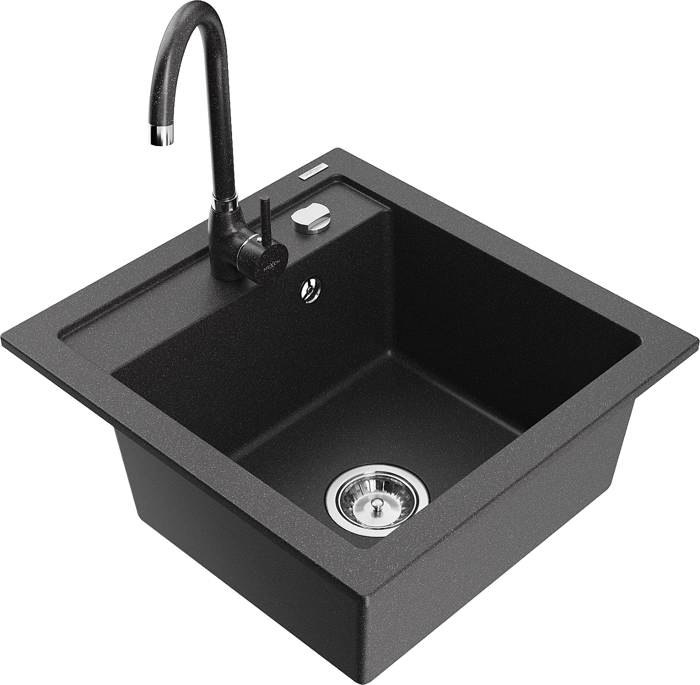 Mexen Vito granitinė vienos kameros plautuvė su Telma virtuviniu maišytuvu, juoda dėmėta - 6503-76-670200-76