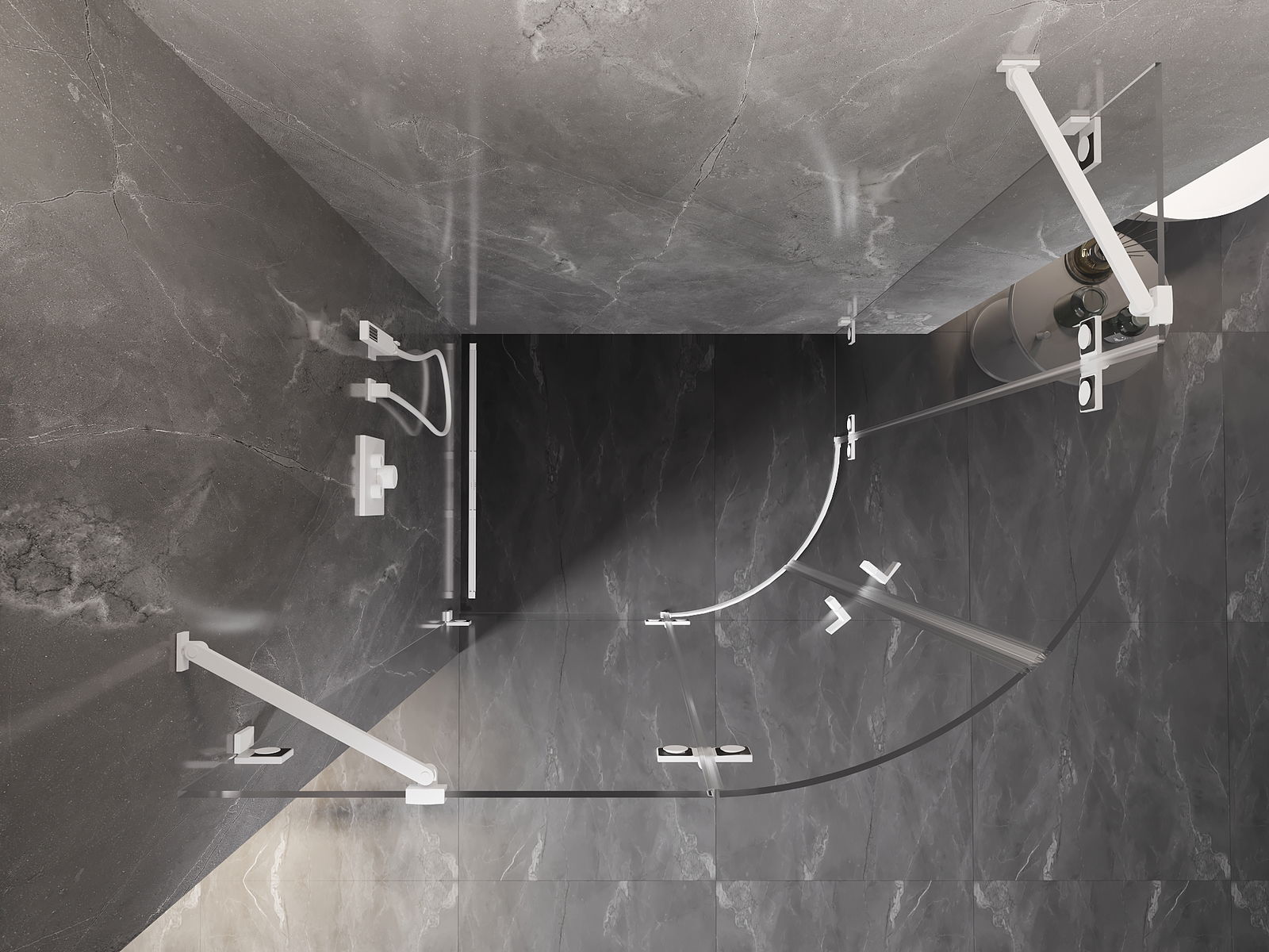 Mexen Lunar pusapvalė dušo kabina atidaroma kairė 100 x 80 cm, skaidri, balta - 833-100L-080P-20-00