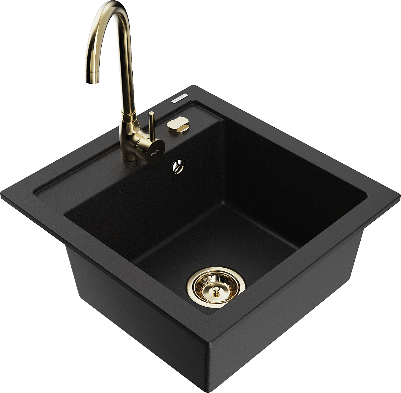 Mexen Vito granitinė vienos kameros kriauklė su Telma virtuviniu maišytuvu, juoda - 6503-77-670200-50