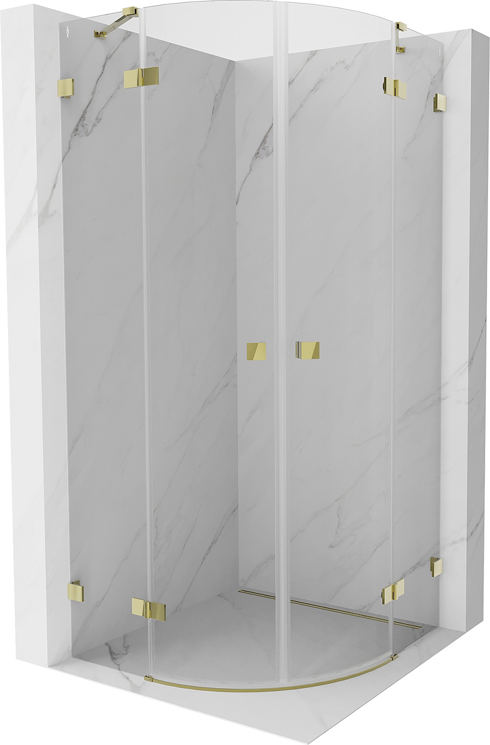 Mexen Lunar pusapvalė dušo kabina su užveriamomis durimis 70 x 70 cm, permatoma, auksinė - 833-070L-070P-50-00