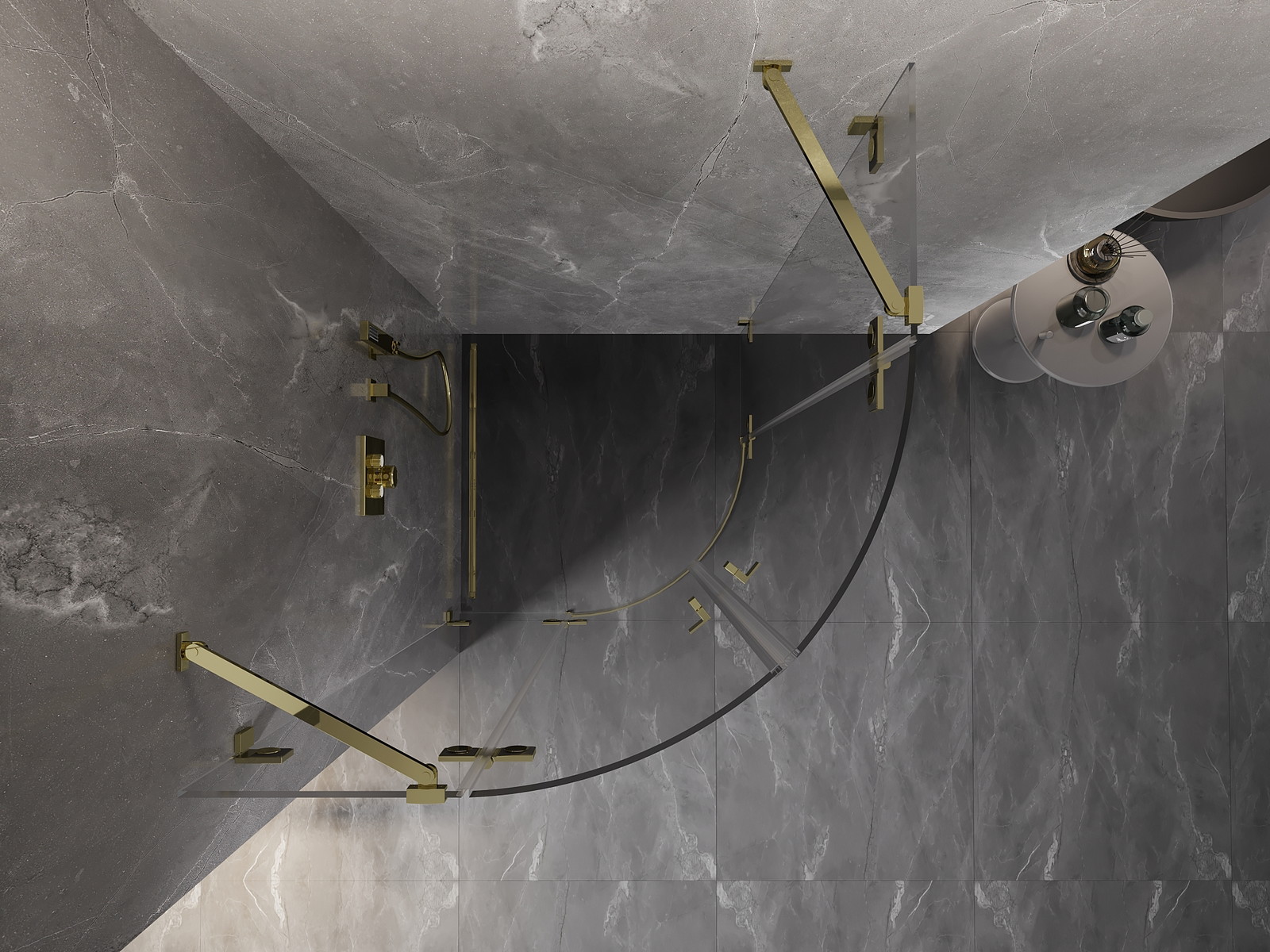 Spaustukai ir vyriai pagaminti iš labai patvaraus žalvario, papildomai sukuriantys lygią stiklo plokštumą. Tai puikus pasirinkimas, jungiantis eleganciją, patvarumą ir šiuolaikinį dizainą. Tokie sprendimai prideda dušo estetikai ir tuo pačiu palengvina švaros palaikymą.