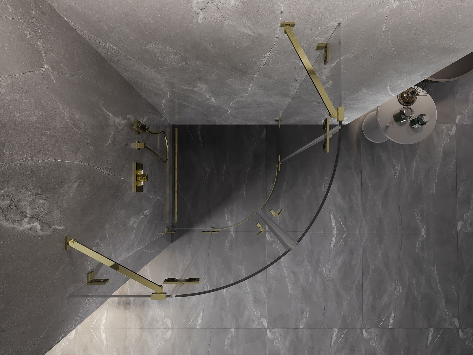 Mexen Lunar pusapvalė atveriama dušo kabina 100 x 100 cm, permatoma, auksinė - 833-100L-100P-50-00