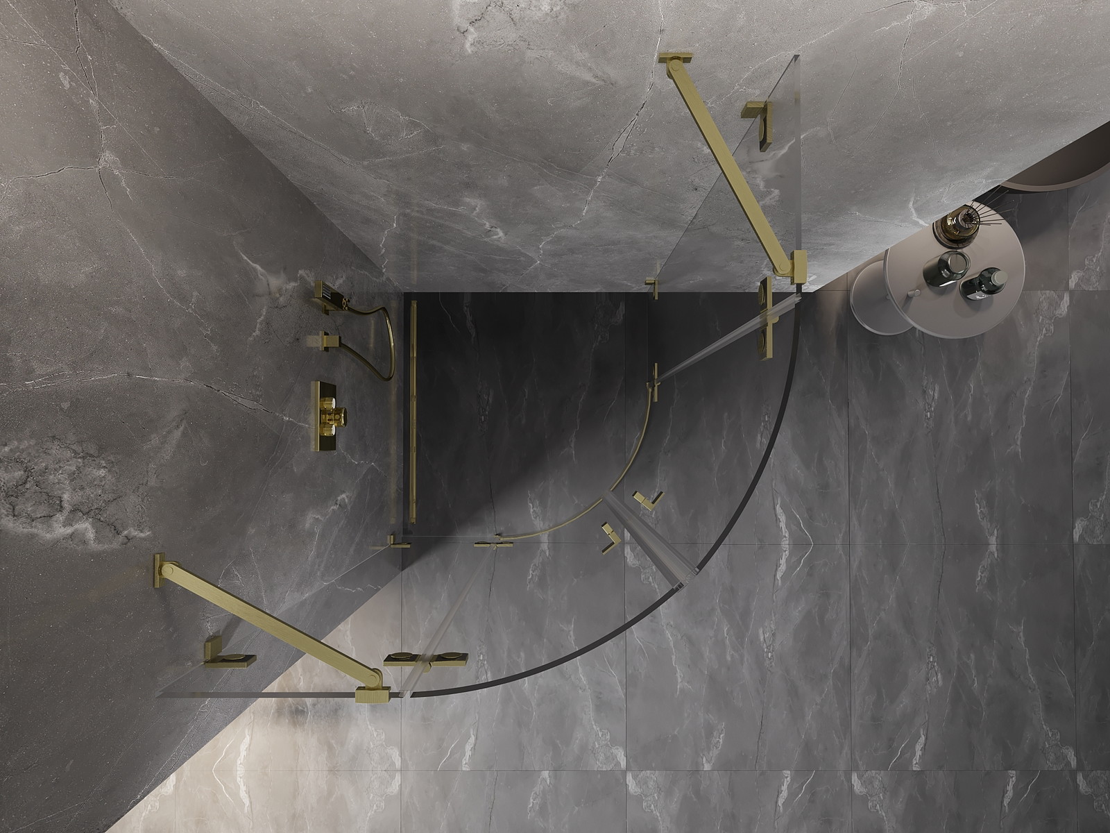Spaustukai ir vyriai pagaminti iš labai patvaraus žalvario, papildomai sukuriantys lygią stiklo plokštumą. Tai puikus pasirinkimas, jungiantis eleganciją, patvarumą ir šiuolaikinį dizainą. Tokie sprendimai prideda dušo estetikai ir tuo pačiu palengvina švaros palaikymą.