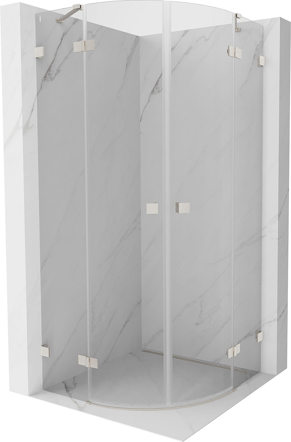 Mexen Lunar pusapvalė dušo kabina su varstomomis durimis 100 x 100 cm, skaidrus, šlifuotas nikelis - 833-100L-100P-97-00
