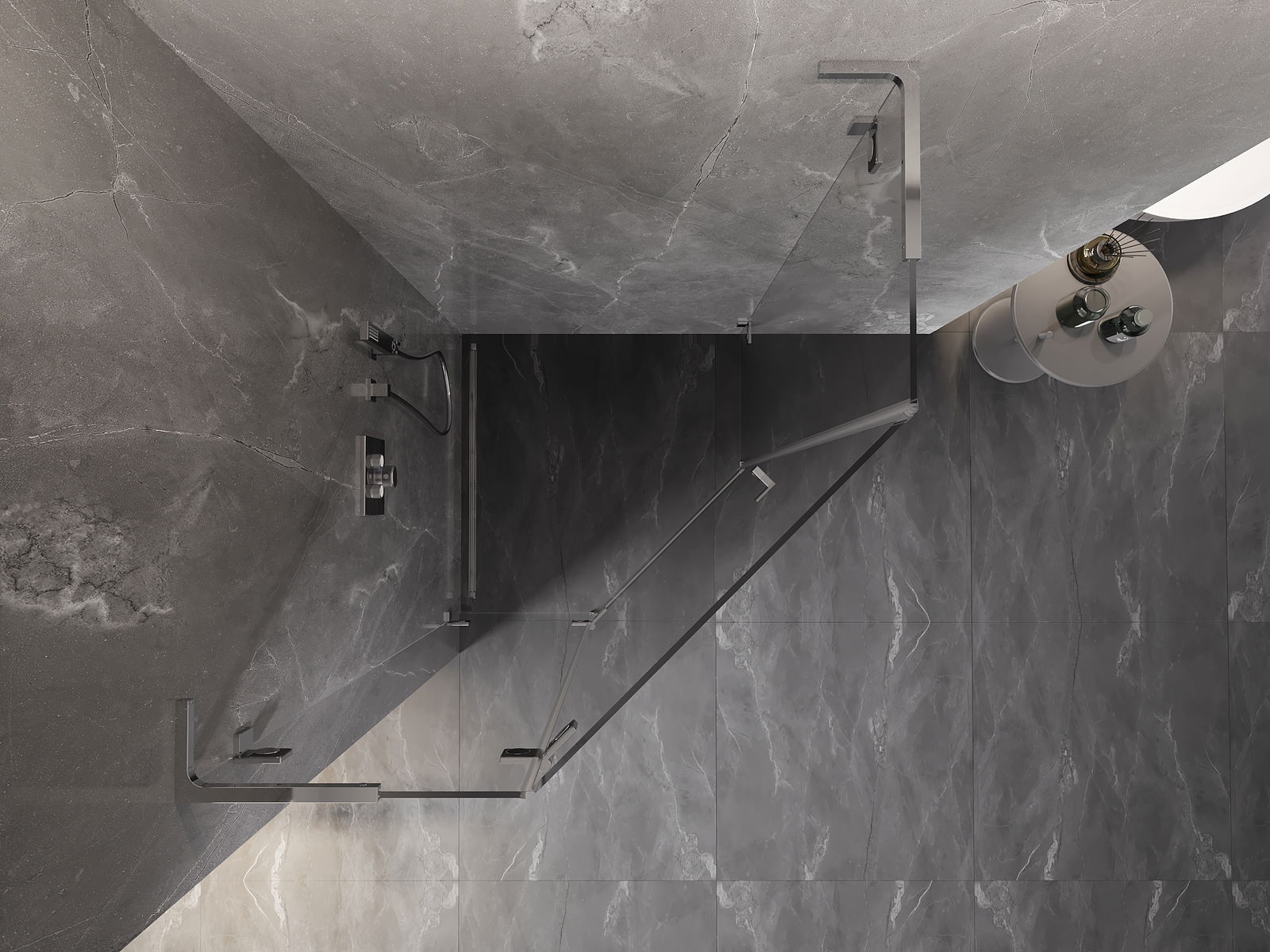 Mexen Lunar L penkiakampė dušo kabina varstoma kairė 100 x 100 cm, permatoma, chromuota - 831L-100L-100P-01-00-L