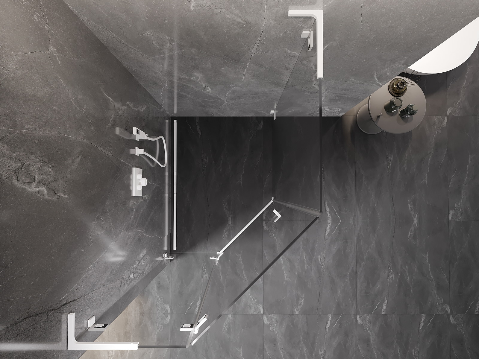 Spaustukai ir vyriai pagaminti iš labai patvaraus žalvario, papildomai sukuriantys lygią stiklo plokštumą. Tai puikus pasirinkimas, jungiantis eleganciją, patvarumą ir šiuolaikinį dizainą. Tokie sprendimai prideda dušo estetikai ir tuo pačiu palengvina švaros palaikymą.