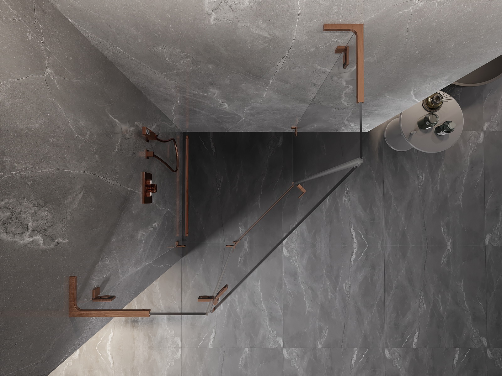 Spaustukai ir vyriai pagaminti iš labai patvaraus žalvario, papildomai sukuriantys lygią stiklo plokštumą. Tai puikus pasirinkimas, jungiantis eleganciją, patvarumą ir šiuolaikinį dizainą. Tokie sprendimai prideda dušo estetikai ir tuo pačiu palengvina švaros palaikymą.
