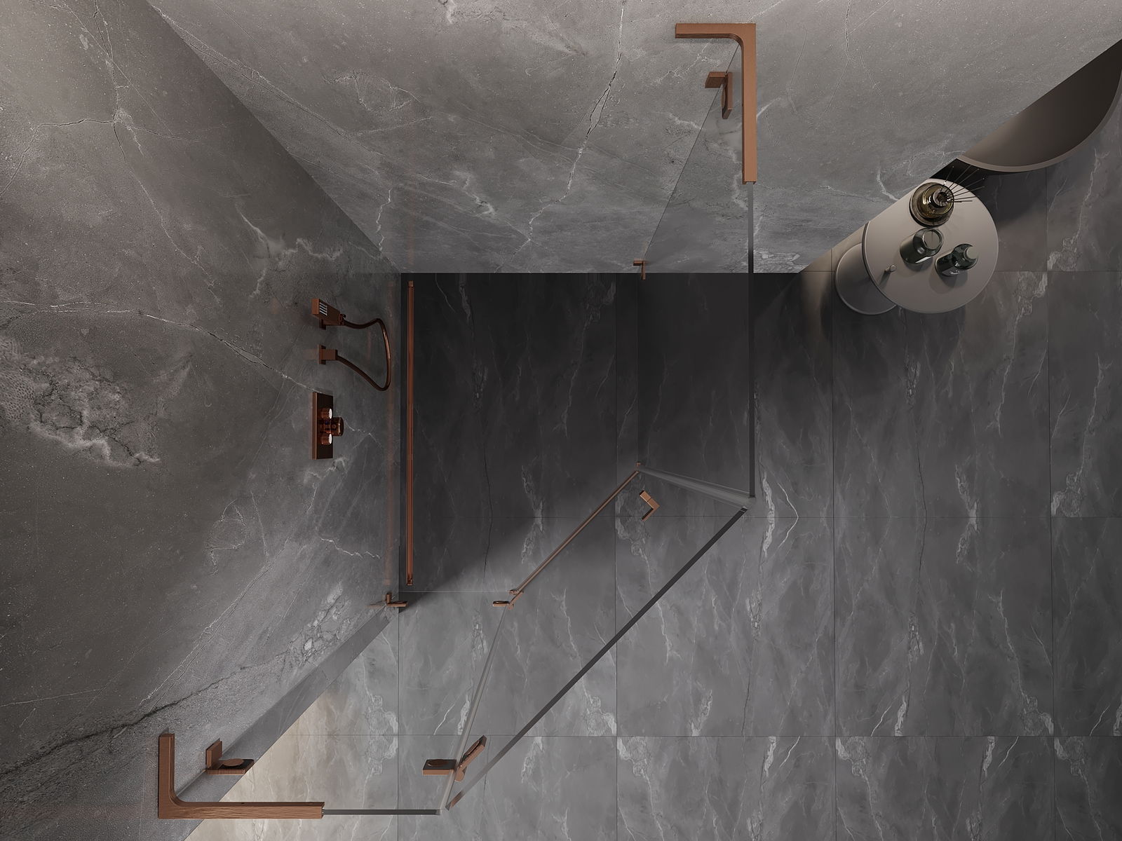 Mexen Lunar L penkiakampė kairinė dušo kabina 80 x 100 cm, skaidri, šlifuotas varis - 831L-080L-100P-65-00-L